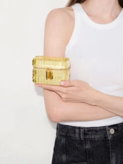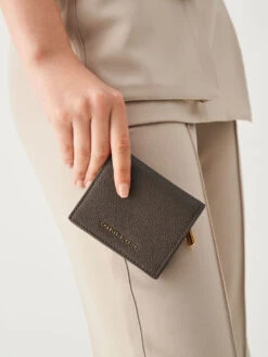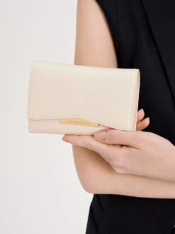In creamy beige to pair with all your pared-back neutrals, this asymmetric flap wallet is trendy and minimalist. From the tactile and visually interesting panelled finish to the modern asymmetric front flap, this pint-sized accessory will add an utterly stylish finish to any outfit. Bonus points for the detachable chain strap, which lets you turn this wallet into a micro-bag for days where you want to travel light.