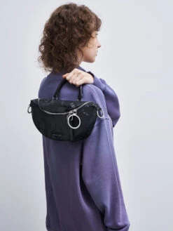 Wrinkled Effect Semi-Circle Crossbody Bag