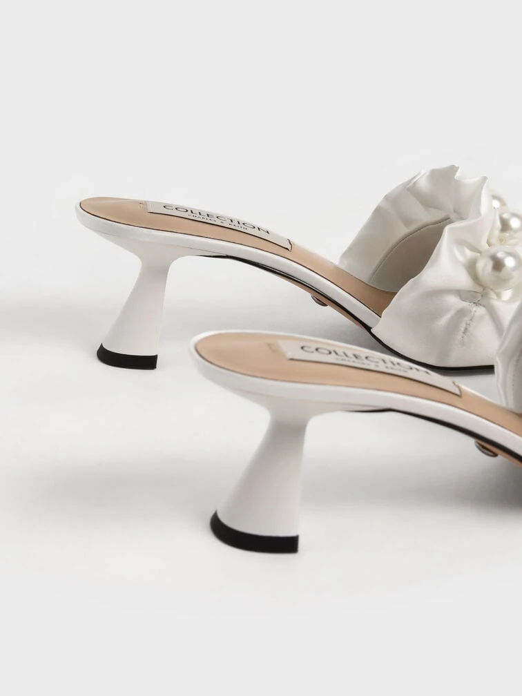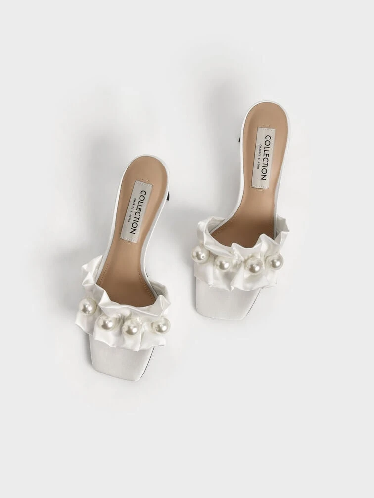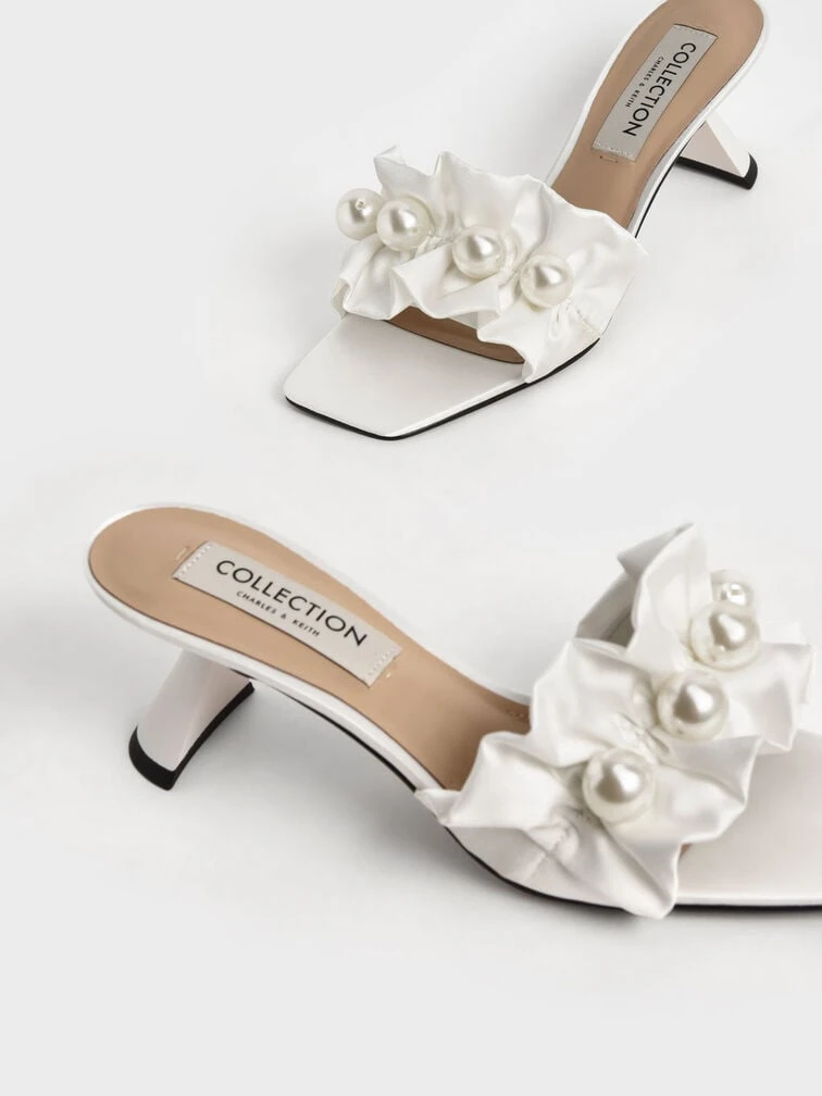 A statement-making entrance is guaranteed when you step out in our Blythe mules, making it an obvious footwear choice for brides and guests alike this wedding season. Swathed in white satin and featuring a ruched strap lined with classy bead embellishments, these beauties undoubtedly tap into the romance of the season. Pair these striking shoes with short hemlines to keep the focus on them — we think a silk-mikado ruched midi dress and a beaded-handle clutch will allow you to strike the balance between modernity and tradition.