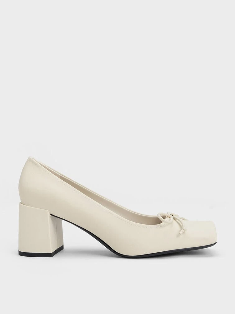 With a trendy square-toe design and bow embellishments, these elegant pumps guarantee serious lift in terms of style and elevation. Set on sturdy block heels, they are comfortable enough to wear for hours on end. The versatile chalk colour also works well with a range of outfits. Show these beauties off with short hemlines.