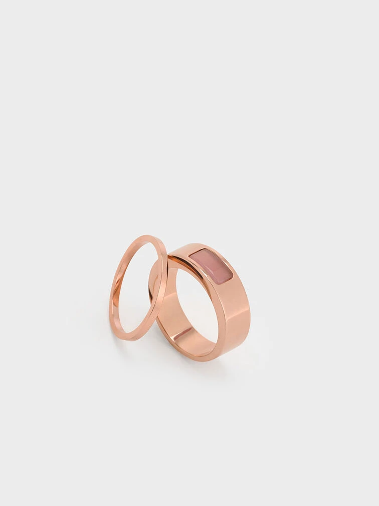 Featuring a sweet rose gold finish, the Briar square two-ring set is perfect for infusing your jewellery collection with a distinctly romantic and feminine feel. Consisting of a classic band and a chunkier ring embedded with a semi-precious stone in a matching pink hue, this set will add a subtle pop of colour to every look you create. Whether worn individually, stacked together, or mixed and matched with your favourite jewellery stack, this set’s versatility makes it a must-have addition to your collection.