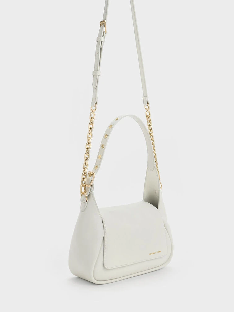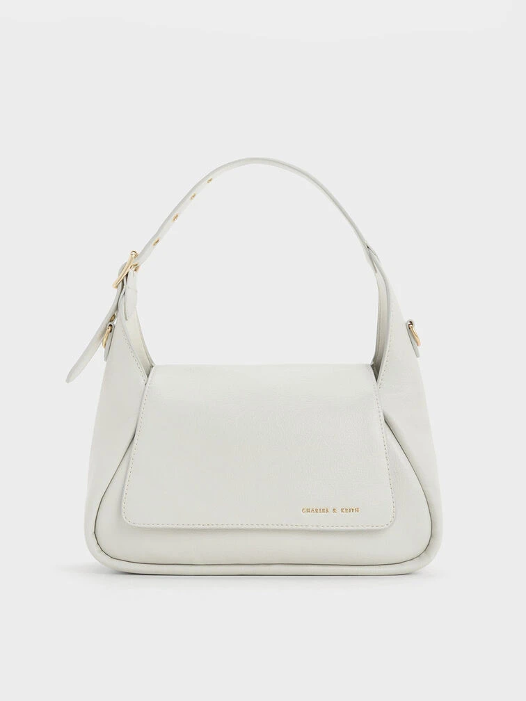 Reach for this Buzz front flap hobo bag when you need an effortlessly stylish carrier. Match-all white is complemented by subtle gold-toned hardware for an understated piece that goes with everything. Magnetic front-flap closure opens up to a roomy interior that will house all your belongings and keeps them secure. For more versatility, customise your fit with the adjustable strap.