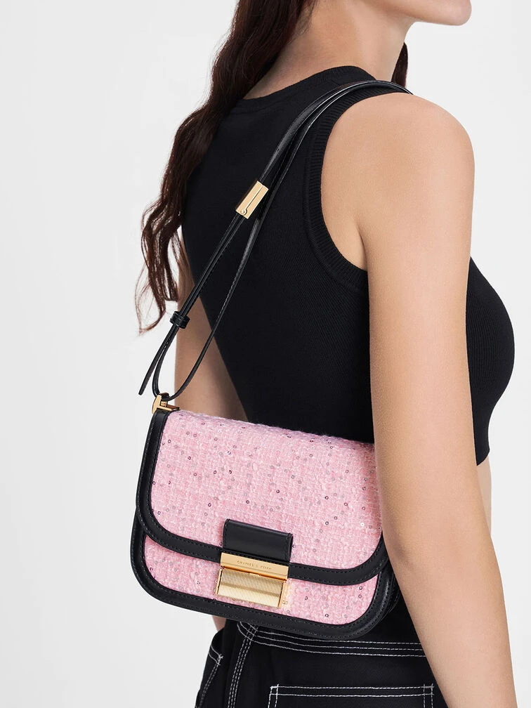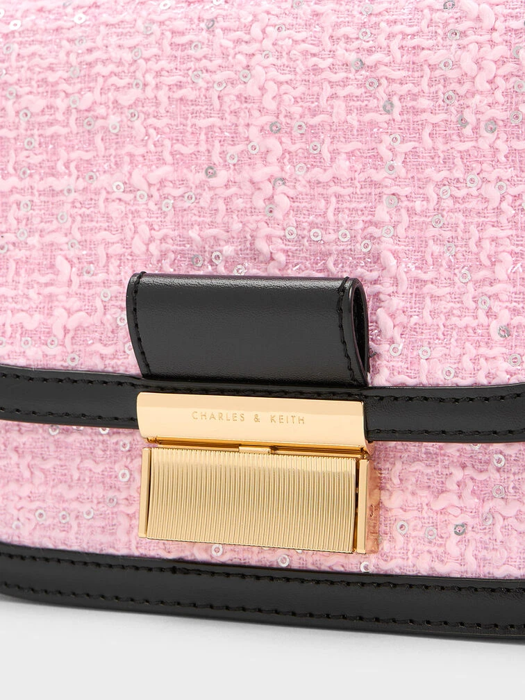 Reinventing a classic with a chic new finish, this tweed iteration of our Charlot bag is a must-add to your accessory collection. Featuring a tactile tweed outer and bold black trim, this bag will showcase your sartorial prowess with ease. Featuring the same minimalist silhouette we know and love, look forward to elegantly curved corners, a simple push-lock closure, and a roomy interior to hold everything you need in a day.
