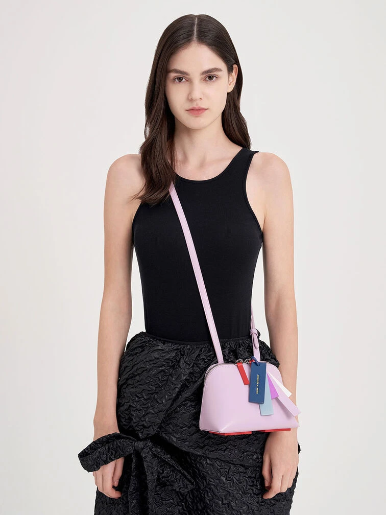 Equal parts feminine and fun, the Cockade crossbody bag is set to join the ranks of bags you’ll want to carry on repeat. From the relaxed trapeze silhouette and spacious interior to the multi-coloured tassle charms and zipper tabs, this accessory checks all the right boxes when it comes to style. Thanks to the zip closure, trust that your belongings are secure and easily accessible. In charming and sweet lilac, let this bag stand out against a neutral-toned outfit.
