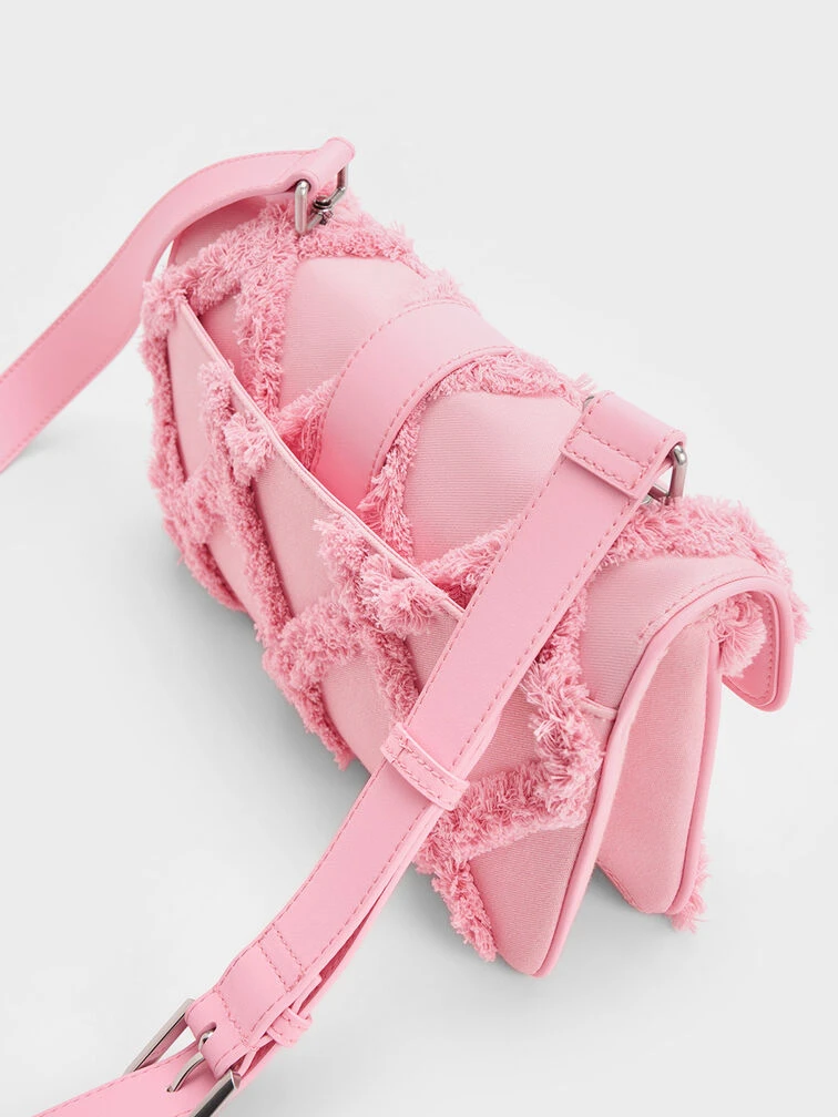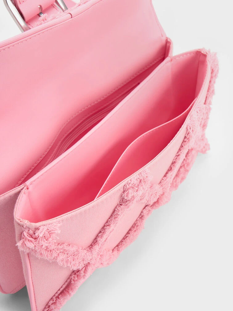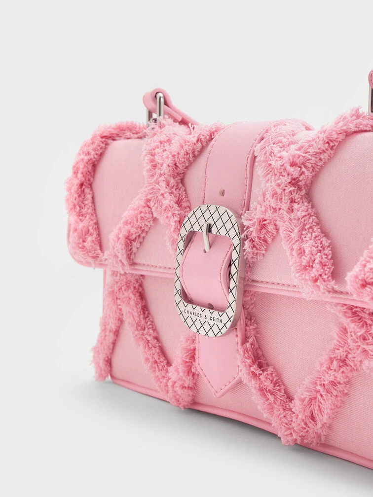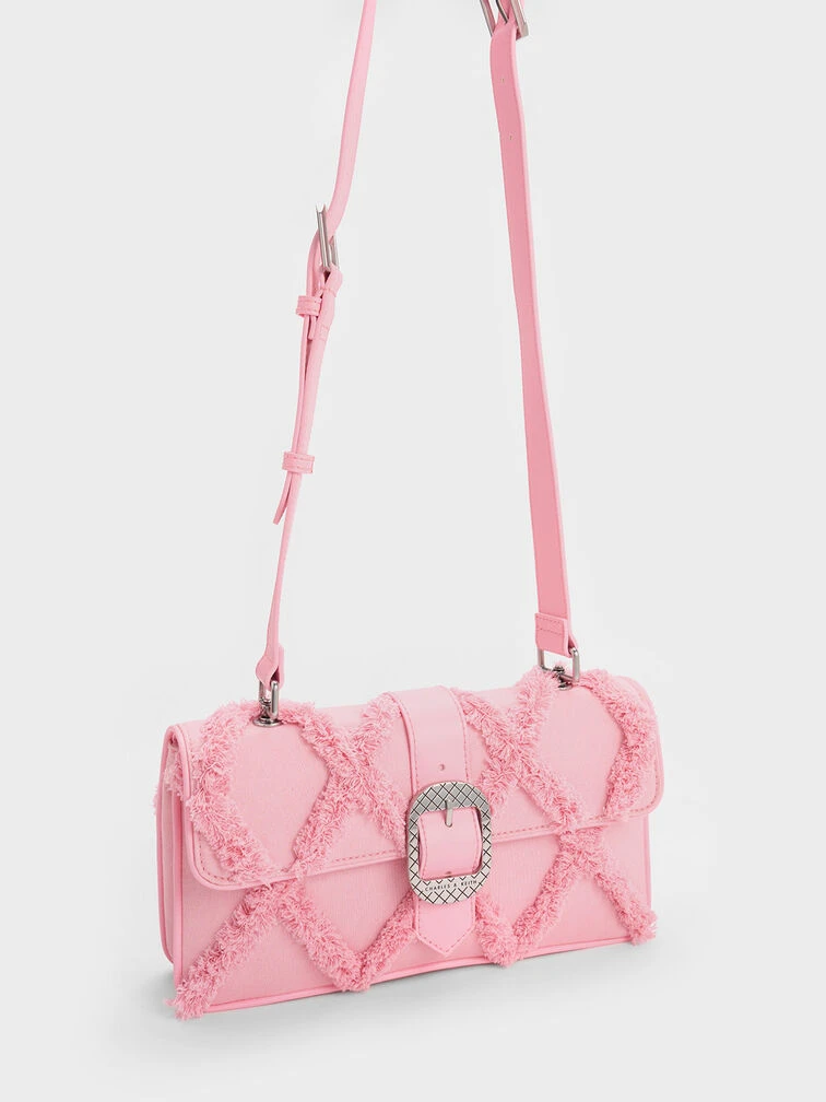 Freshen up your look with this standout Eilith buckled bag. The defining feature of this bag is the tactile denim quilted finish, a striking design element that makes a big visual impact. In a pretty and eye-catching pink, it will bring you admiring glances wherever you go. Keep it simple with a classic white t-shirt and jeans ensemble, and let this piece be the highlight of your outfit.