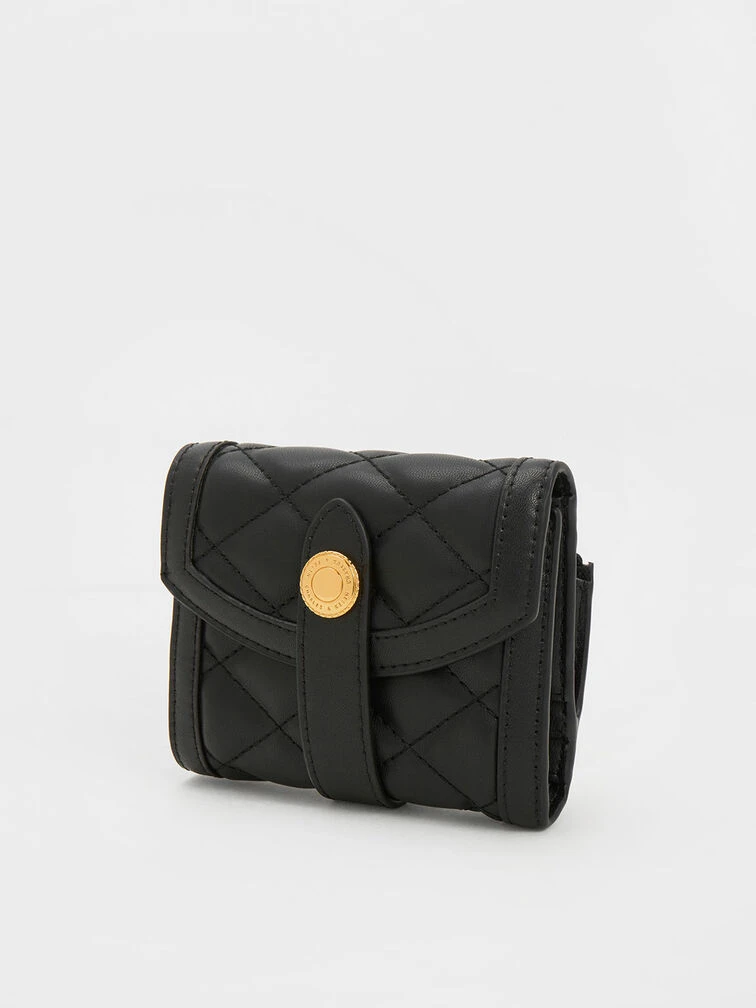 Imbue your everyday outfit with a touch of elegance with the classically beautiful Este wallet. In a timeless black shade, this wallet will never go out of style. The plush quilted outer design adds a luxurious texture, while the gleaming gold-toned accent on the front flap enhances the wallet’s classy finish. Featuirng a magnetic closure that opens up to reveal multiple slots and compartments — which provide ample space to organise your valuables and belongings — the Este is the epitome of functional style.