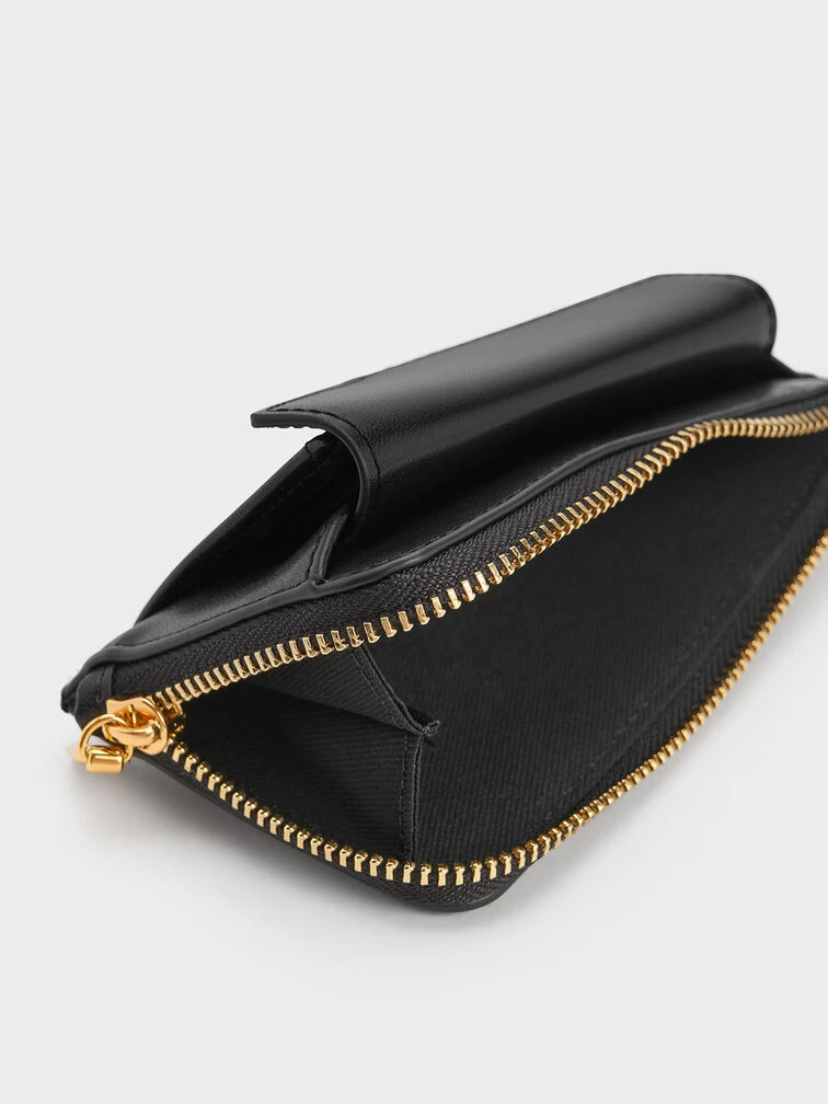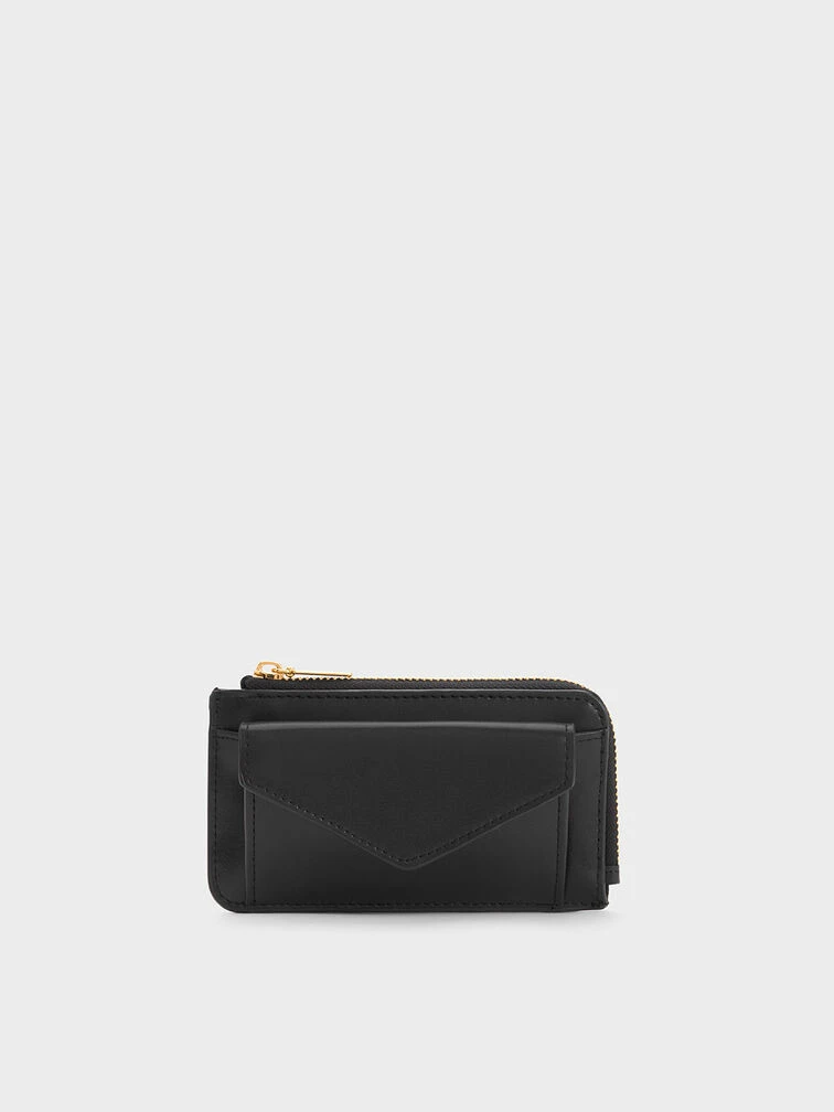 For a staple that will last you through the seasons, look no further than our Eudora envelope card holder. In classic black for maximum versatility, this accessory will slot seamlessly into your daily routine. Featuring multiple slots to keep your cards, a zip compartment, and an additional envelope-style flap pocket for small items, this cardholder is form and function at its finest.