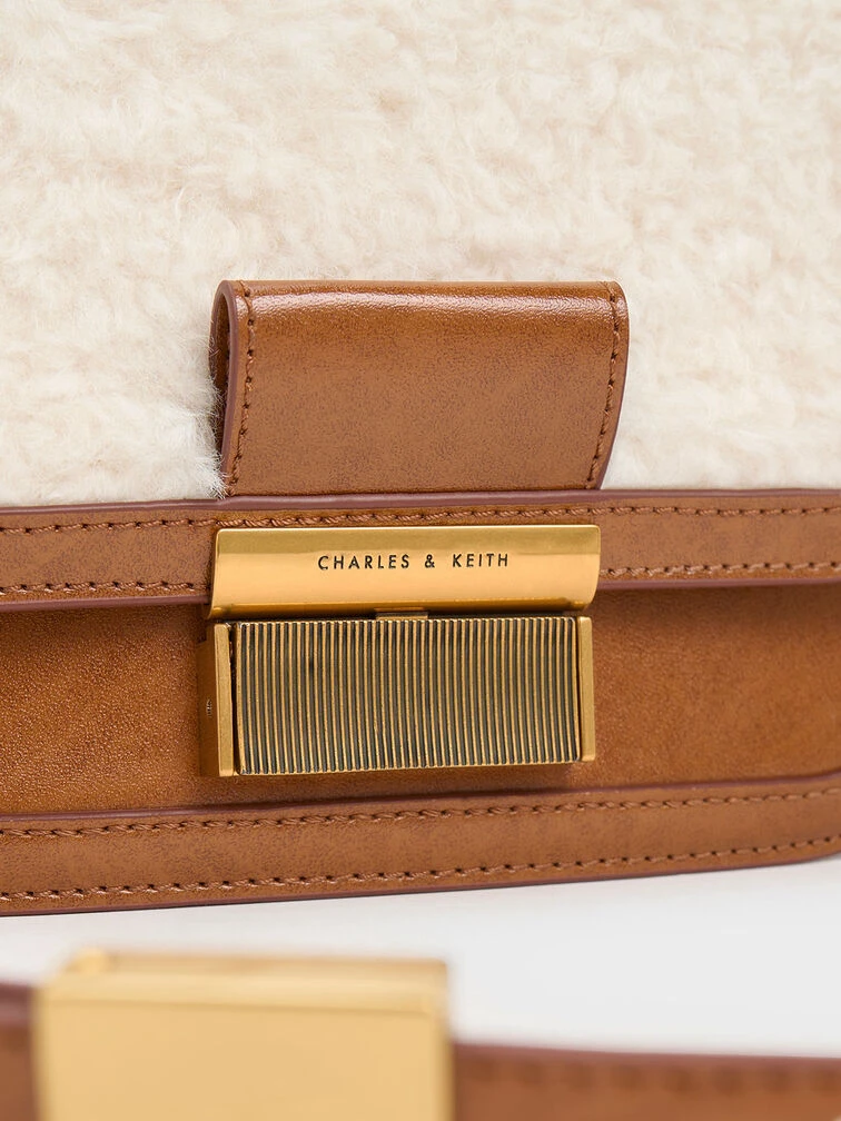 Presenting our latest iteration of the Charlot bag, complete in a soft furry finish with contrasting brown-trim lining. This is undoubtedly a piece that will see you through the fall-winter days in style.The neutral white-and-brown colourway makes them such an easy pairing that will go effortlessly with most of your wardrobe while adding textural interest while the roomy interior offers more than ample space for your belongings.