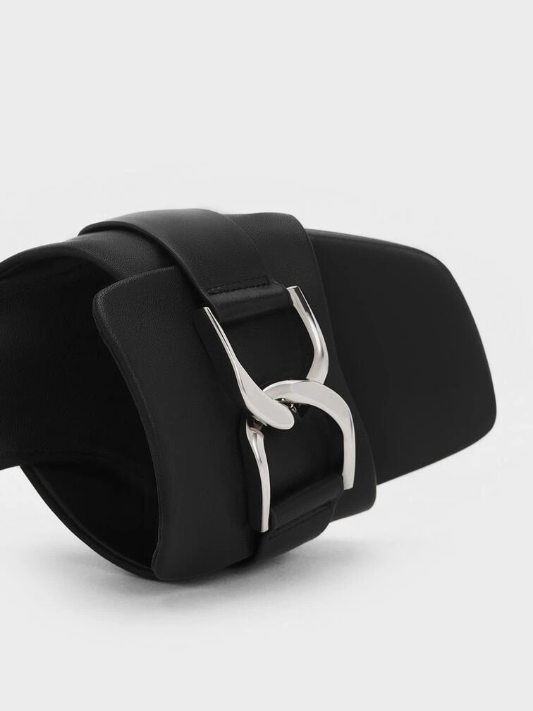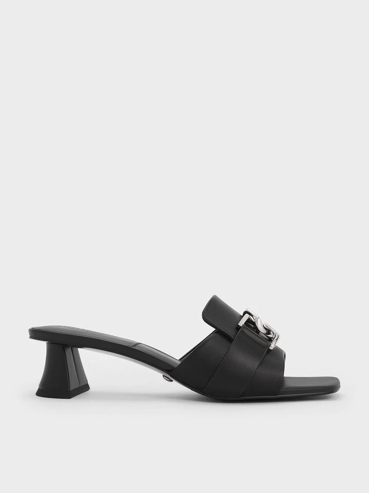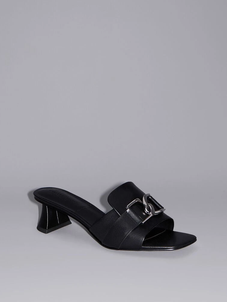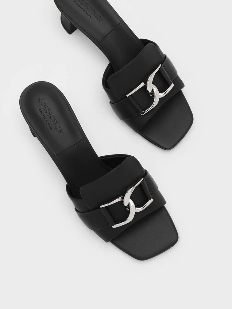 Introducing the newest addition to the Gabine family: the stunning leather block heel mules. With their timeless black finish and incredible versatility, these mules are the perfect addition to your everyday wardrobe. The understated elegance of the silver-toned interlocking Gabine buckles adds a touch of sophistication to the design, elevating these mules to a whole new level of chic. Whether you’re dressing up for a special occasion or going for a more casual look, these mules effortlessly blend into any ensemble, enhancing your style with ease.