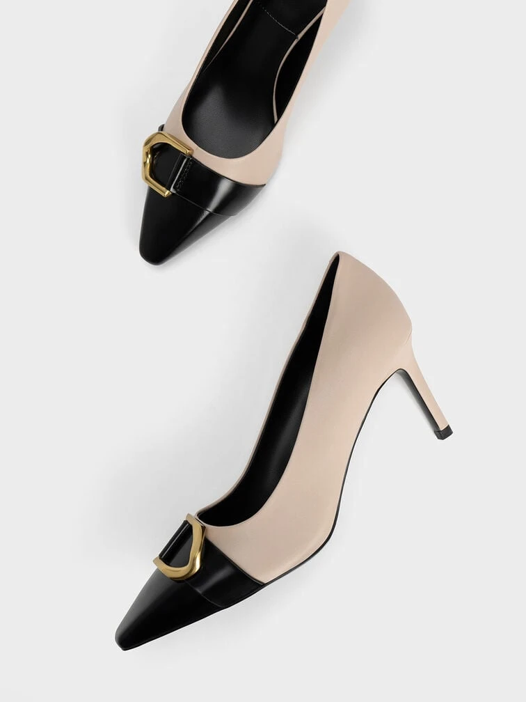 Give your office outfits a polished finish with our Gabine leather pumps. In an ever-versatile beige, the contrasting toe-cap adds a two-tone element to these classic shoes, while the iconic Gabine buckle across the vamp introduces a bit of sophisticated shine that keeps this pair visually interesting. Made from genuine leather for a luxurious look and feel, these heels are equal parts comfortable and stylish. Team them with tailored pieces for a put-together, structured look.
