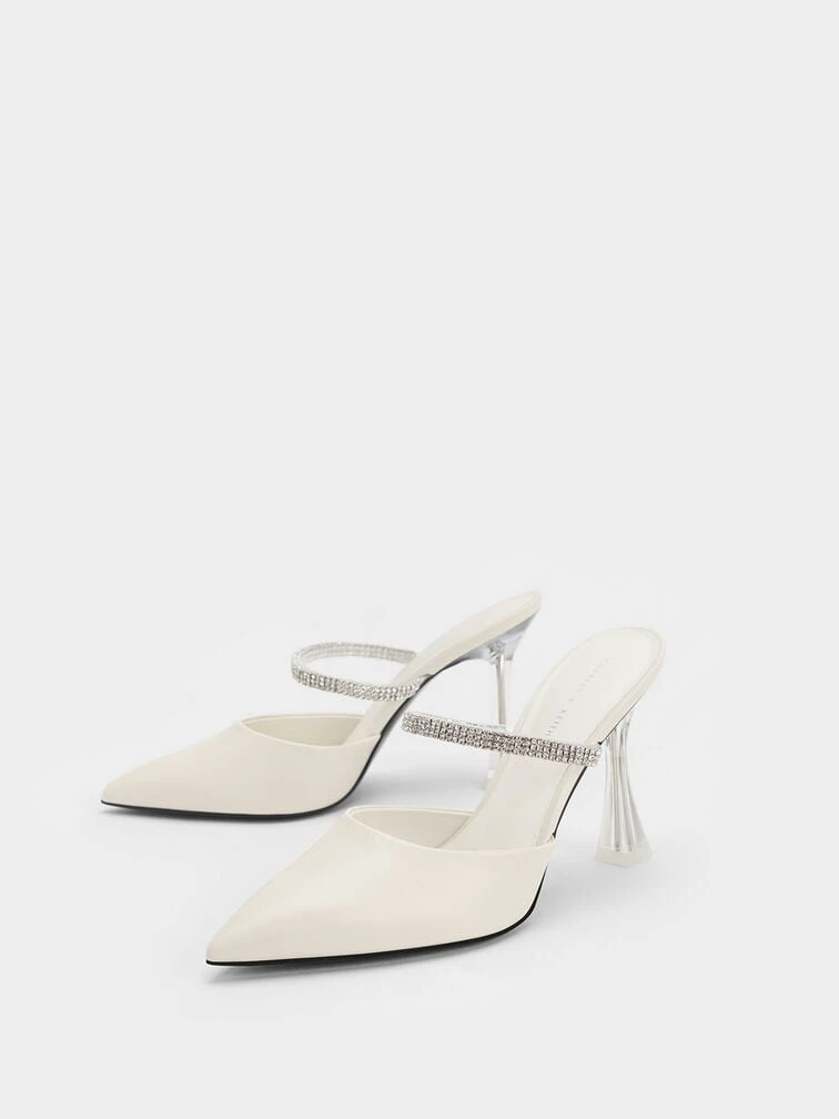 These pointed toe mules are set on clear heels that are a nod to Cinderella’s glass slippers. Still, the crowning glory is definitely the light-catching gem strap. Bonus points for the pointed-toe design elongates your frame and creates a sharp silhouette. Style this cream pair with your favourite evening gowns.