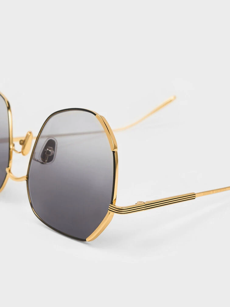 Stand out wherever you go with these butterfly sunglasses, which feature a unique geometric wire-frame design. The wire-frame design adds a touch of minimalist charm, while the black finish adds a sleek and timeless appeal. Crafted with attention to detail, these sunglasses feature lightweight and durable materials that guarantee comfort and longevity. The oversized silhouette offers a statement-making look while ensuring optimal sun protection.