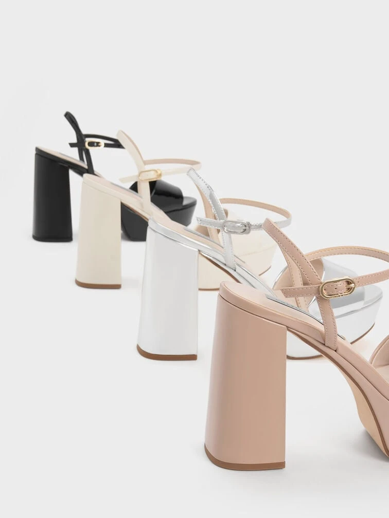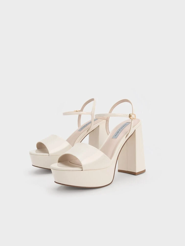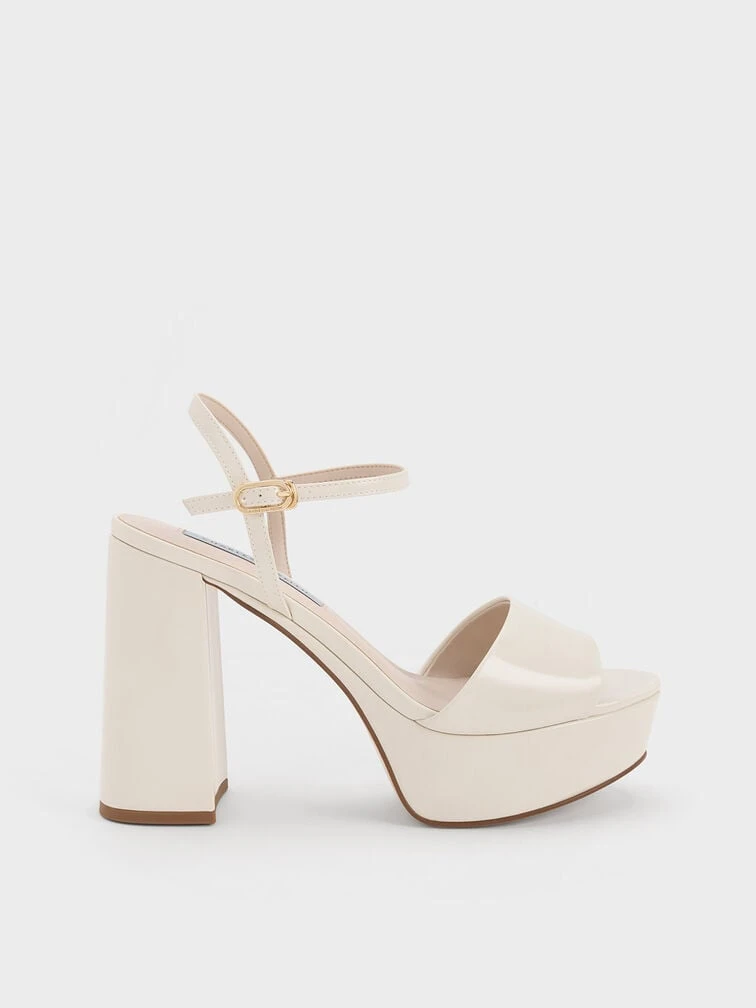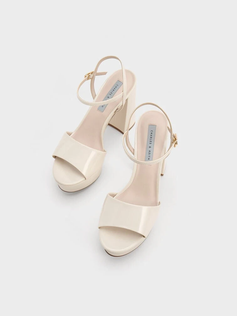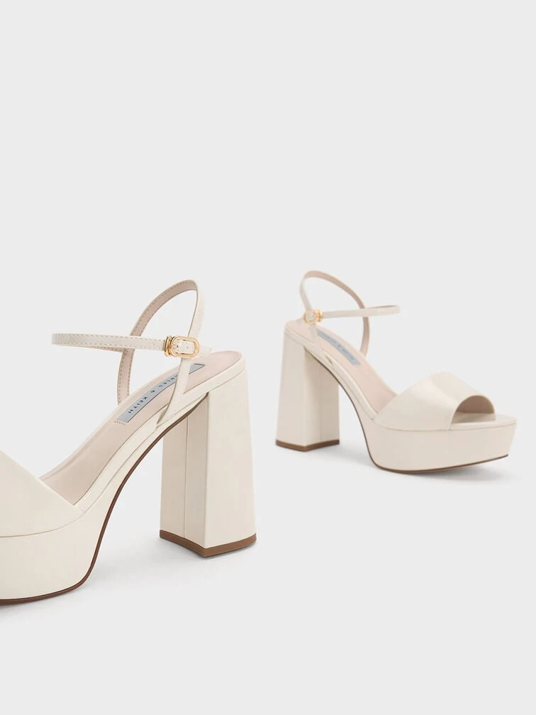 Freshen up your look with these off-white platform sandals. Set on towering 11cm platform block heels, these shoes are undoubtedly show-stopping. The pretty peep-toed design also makes it great for showing off your beautiful pedicure. Plus points for the adjustable slingback straps that ensure a secure fit.