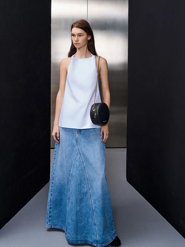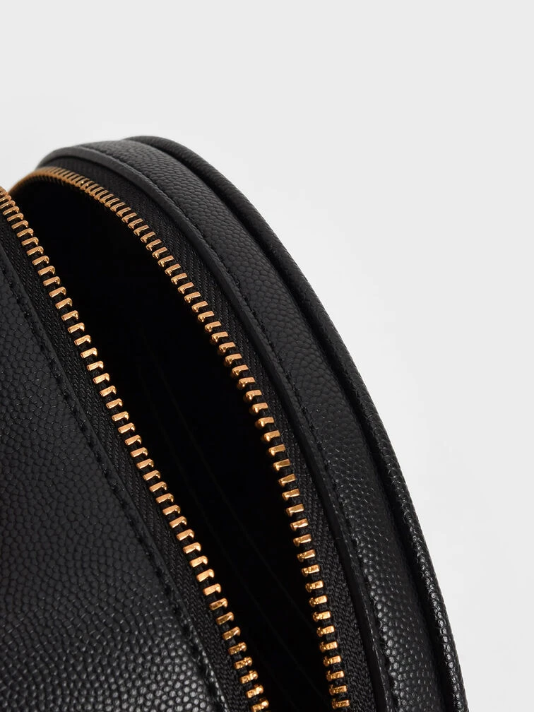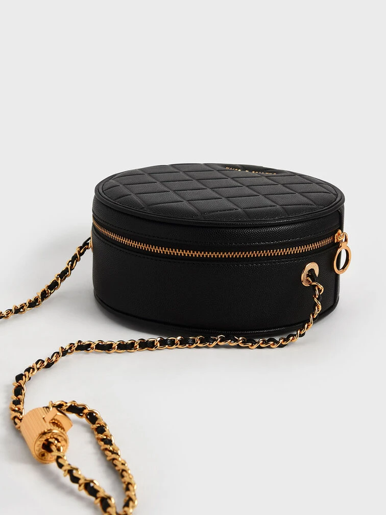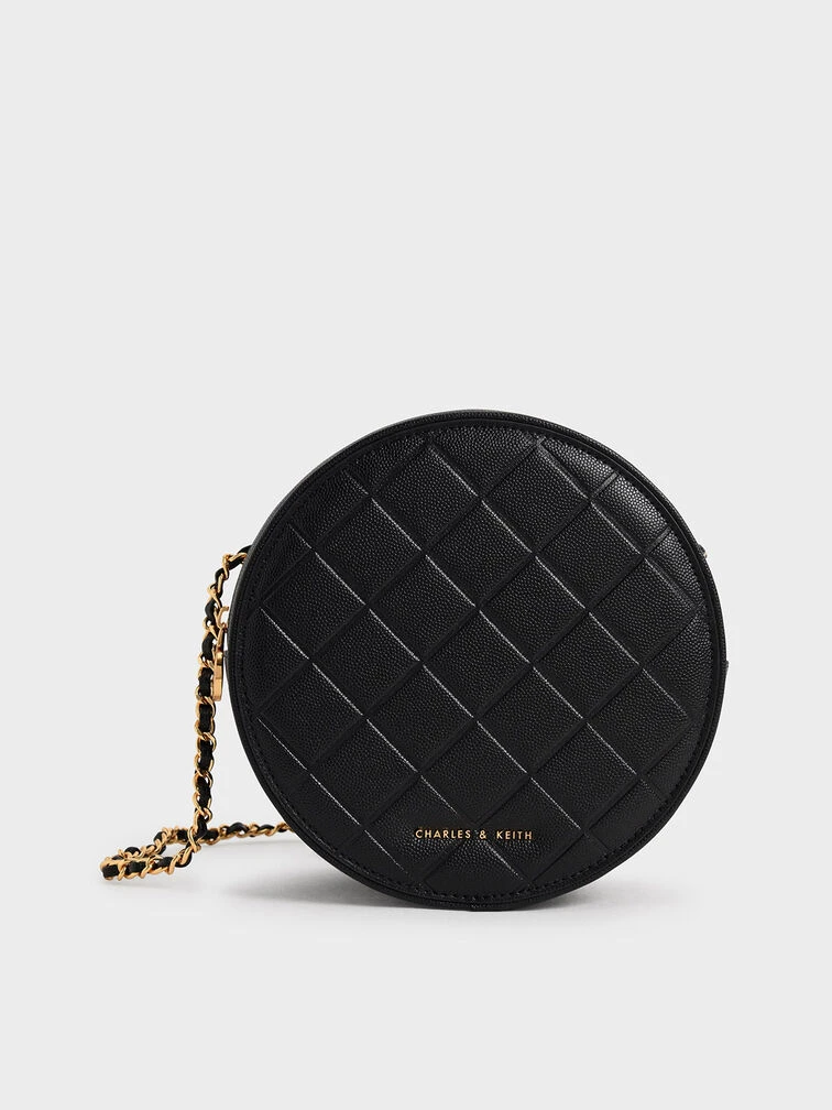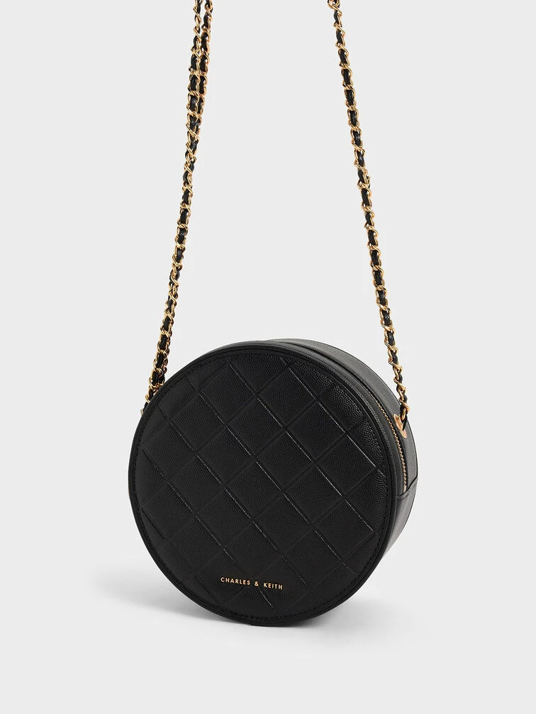 Go big on style this season with our timeless black circle bag. Compact, quilted, and hands-free — thanks to the adjustable chain and faux leather straps — this spherical bag is a playful alternative to the standard handbags and satchels. Not only is it tactile, it is also pleasing to the eye. Use it to anchor your weekend denim shorts, cropped top and strappy flats ensemble. Throw on a pair of geometric sunglasses and you are all set to shine.