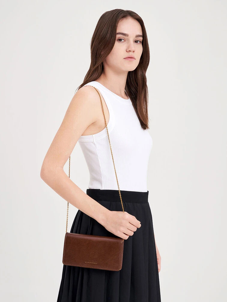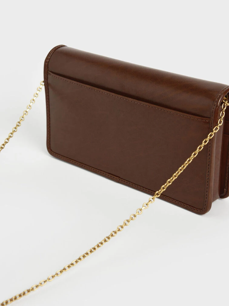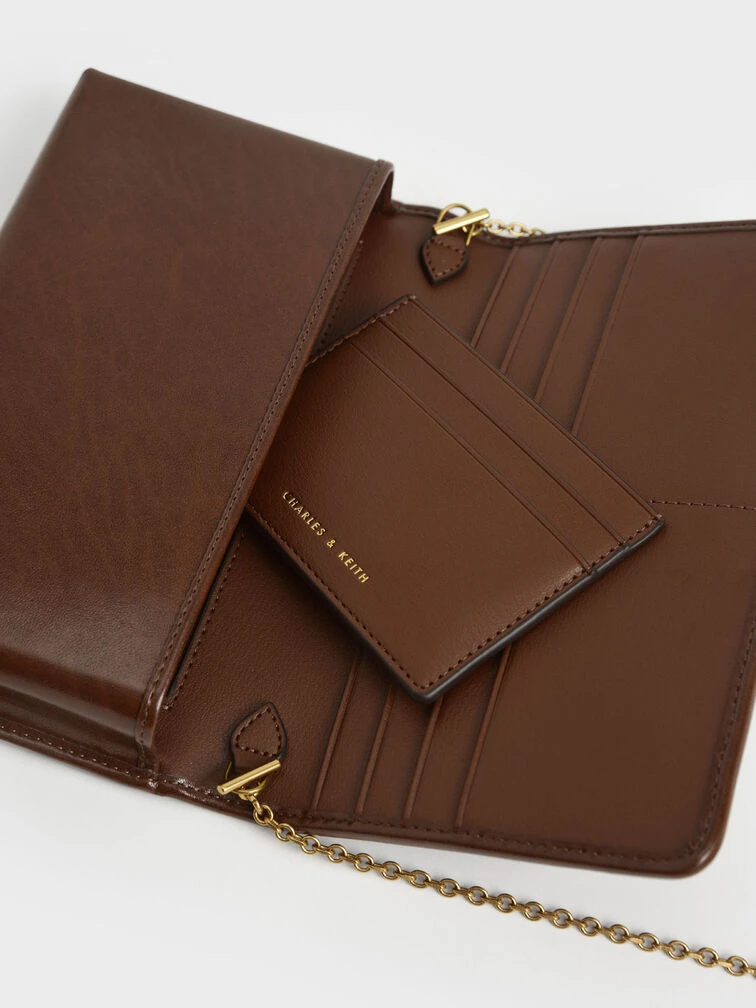 Looking to upgrade your everyday wallet? With a gorgeous cognac finish and minimalist design, this long wallet is easily a top contender. A classic magnetic closure keeps your essentials secure and easy to access throughout the day. Exude effortless elegance no matter the season with this wallet that works perfectly well on solo errands as well. Bonus points for the detachable chain strap that offers a hands-free option.