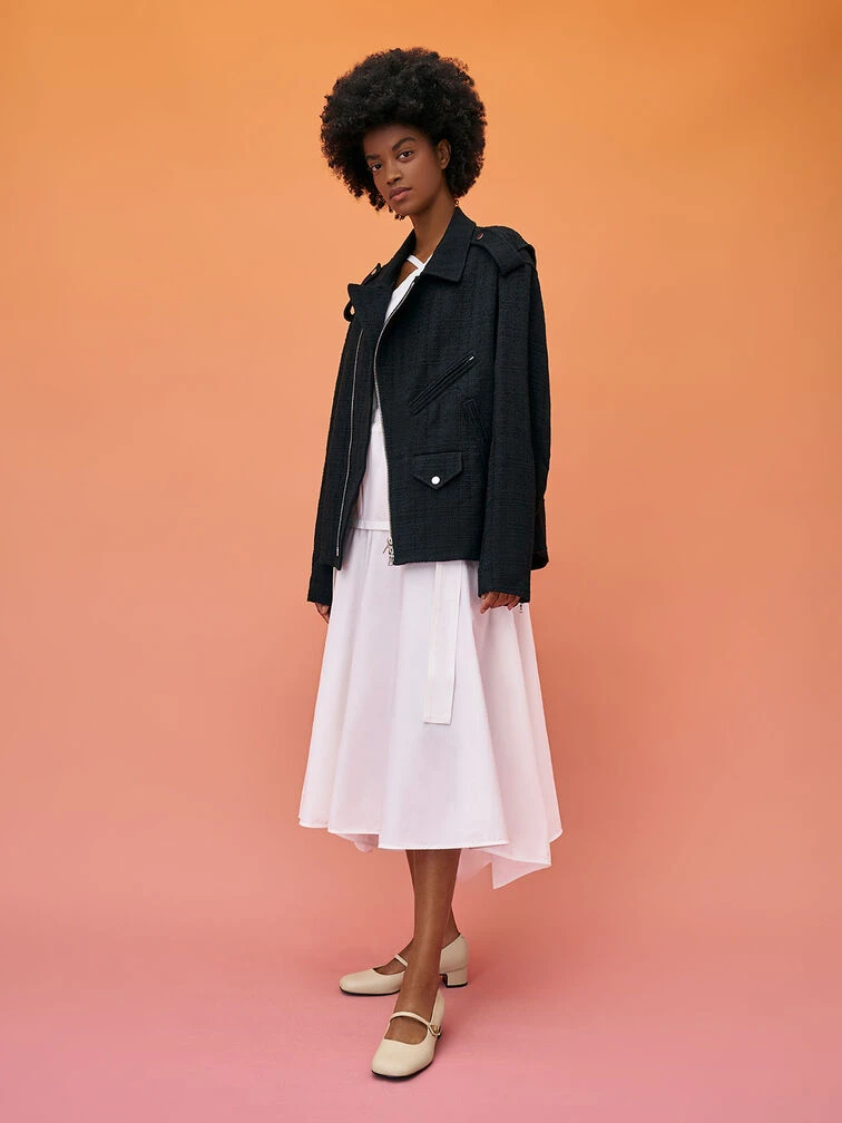 The Mary Jane silhouette is a classic that will stand the test of time and our latest iteration comes in a butter-beige colourway that will slot in seamlessly with your collection of neutrals. It also features a rounded square-toe and a strap across the vamp that is secured with a sleek metallic accent. Wear yours with prairie dresses on your dates.