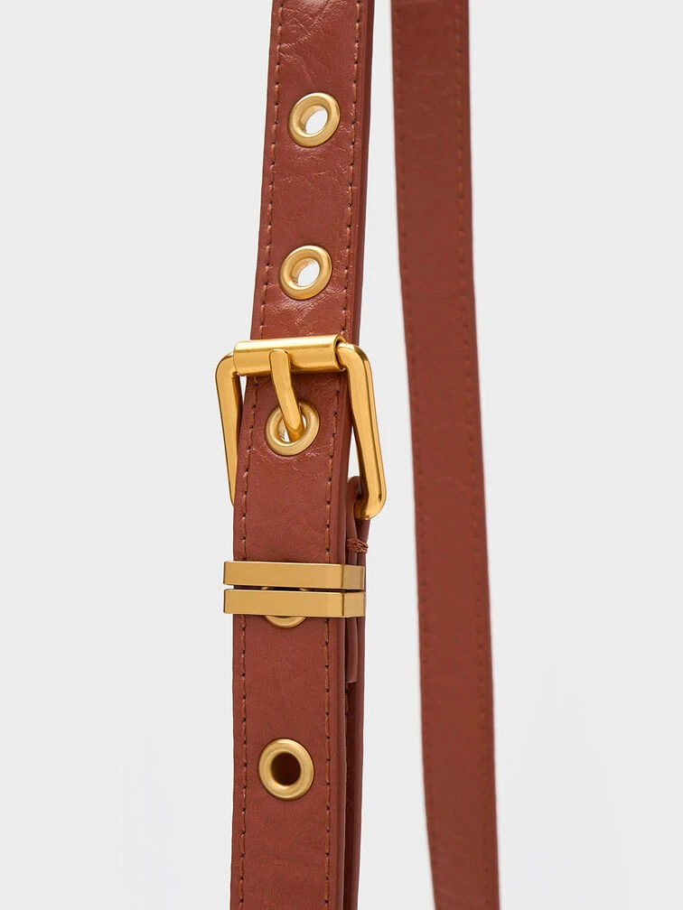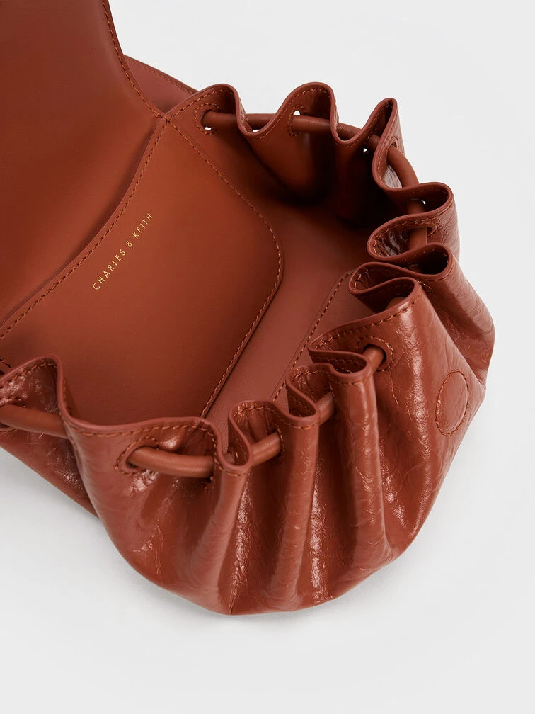 In a brick-brown colourway and featuring a lattice panelled finish on the front flap, this iteration of our mini Blossom crossbody bag is distinctively bohemian. Perfectly sized to house the essentials, the interior compartment will easily hold your phone, cardholder and compact. Plus, the magnetic closure makes it convenient for you to access your belongings. Lean into the vintage vibe by styling it with a floaty white dress.
