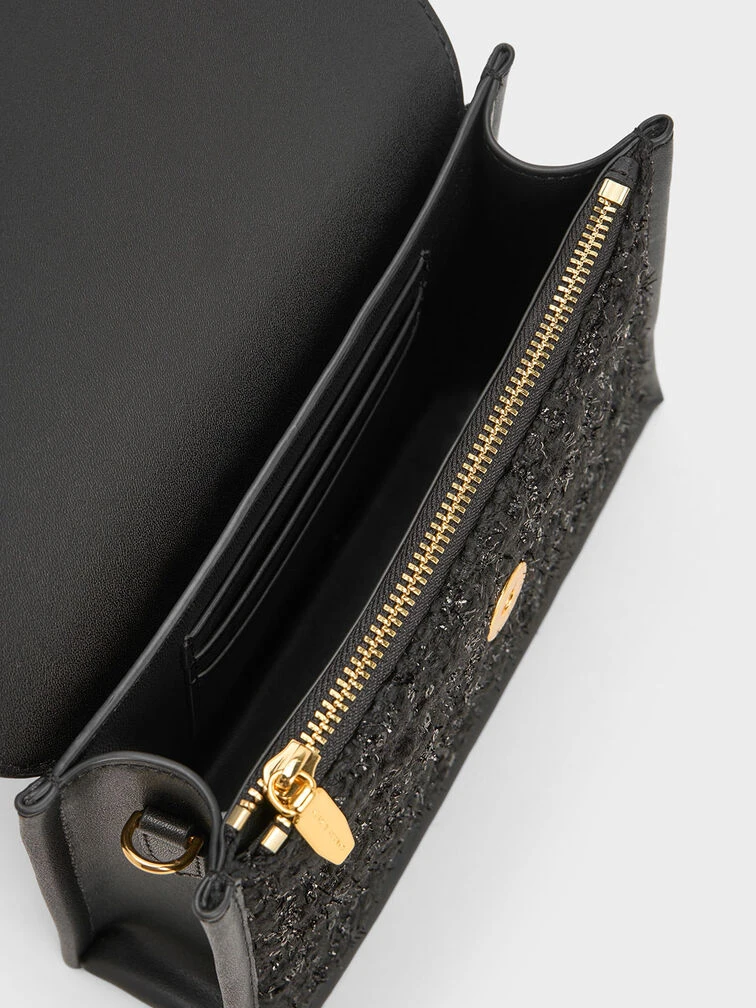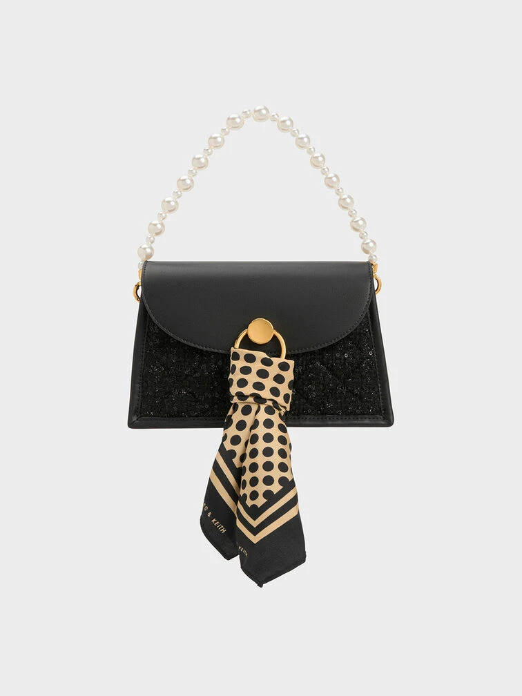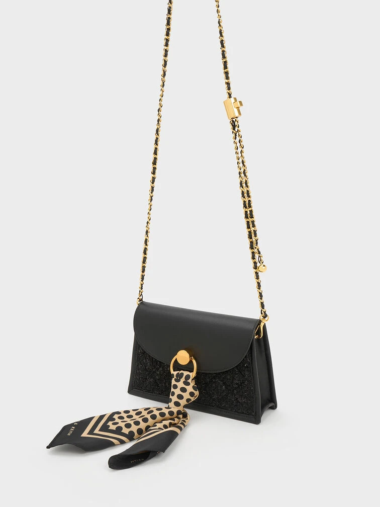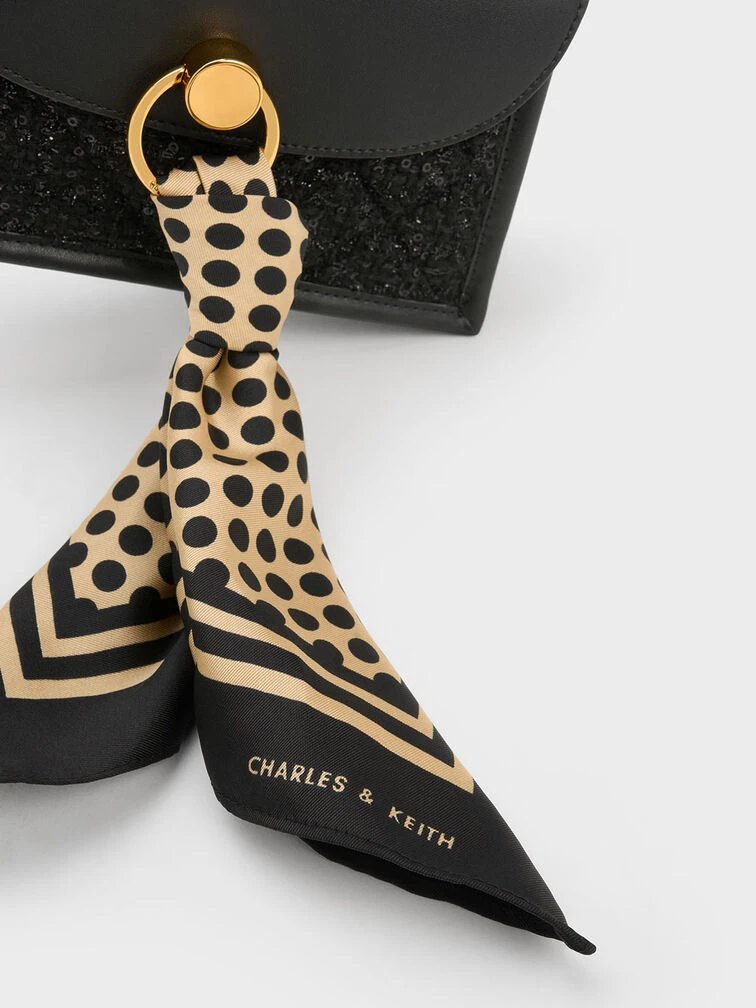 This mini Roza bag is an accessory that you can count on to pull all your looks together. A sleek, structured silhouette, a quilted finish and a patterned scarf combine to create a polished and modern design. In black, this sophisticated carrier can be used from day to night. Pair it with jeans in the day, and a voluminous tulle dress at night – this versatile carrier will complement a range of looks with ease.
