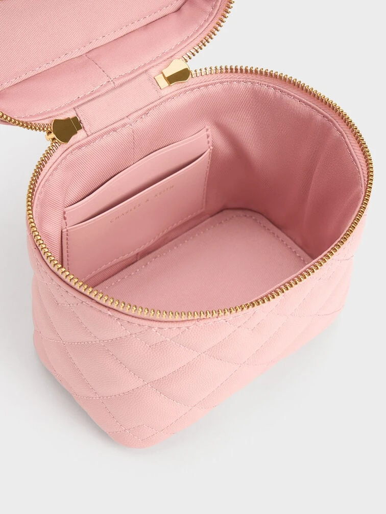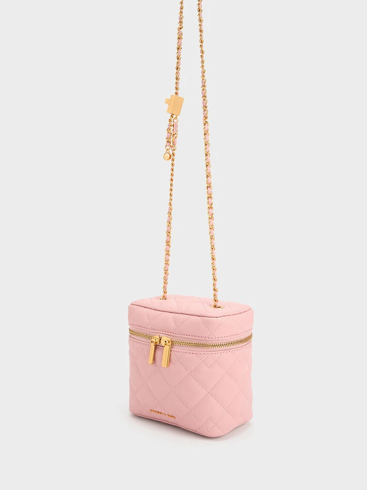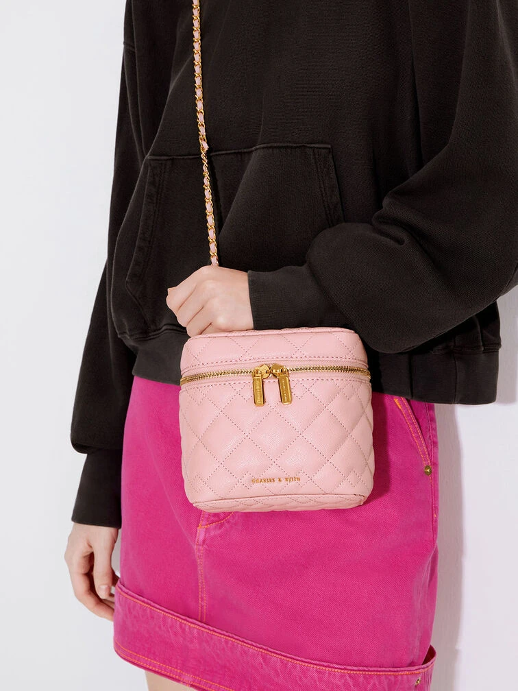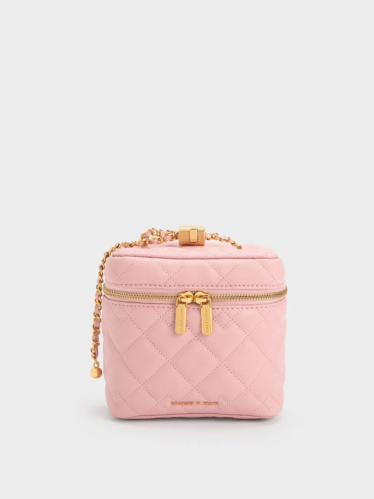 Our light pink Nezu boxy bag will make a refreshing break from classic black. Elegant with classic quilting and featuring a hint of gold-toned hardware, it will make the perfect outfit companion for evening events or soirees. Alternatively, you can use this gem as a vanity case. Thanks to the spacious inner compartment, it can hold your makeup and brushes with ease.