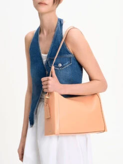 In soft blue, this bag is a piece that you will definitely find hard to resist. Featuring a modern trapeze shape with rounded corners for a more refined appearance, it will effortlessly add understated sophistication to your everyday outfits. Plus, it comes with a unique chain-strap handle with a soft upper, so it will sit comfortably on your arm even if you carry it all day.