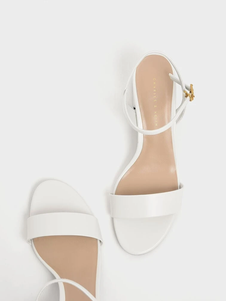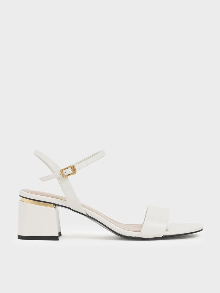 Sandals that can take you anywhere. Stand out from the crowd when you pair these chalk white block heeled sandals with cropped bell bottom jeans and a puff-sleeve blouse to exude vintage vibes.