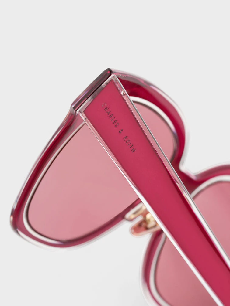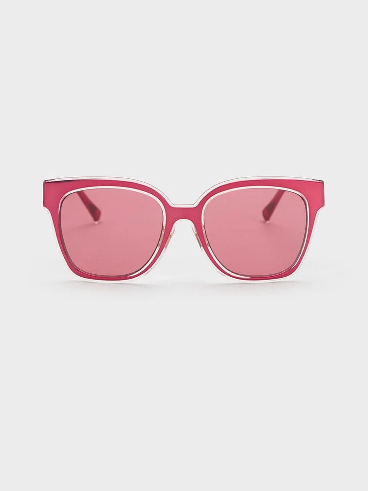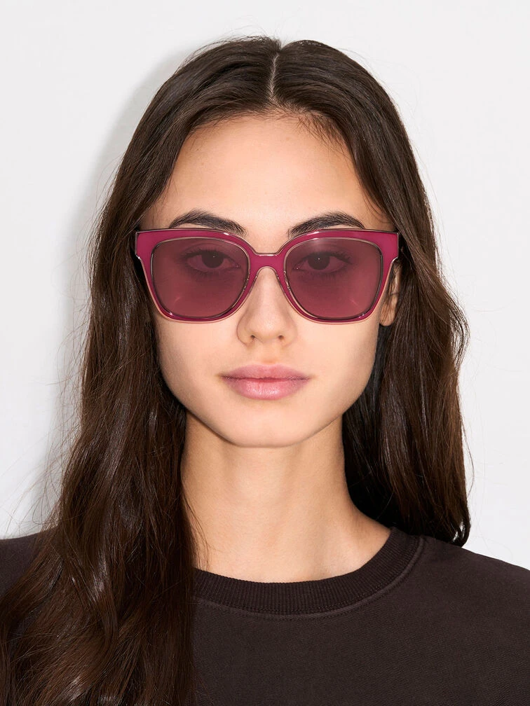 From the whimsical oversized square frames to the subtle metallic outlines, these sunglasses will reintroduce fun into your dressing-up routine. From the frames to the lenses, these sunglasses feature an all-over fuchsia finish that is set to turn heads wherever you go. Whether worn as a statement accessory or as part of a colourful ensemble, these sunglasses offer style as well as function – their tinted lenses will keep your eyes protected from the glare of the sun.