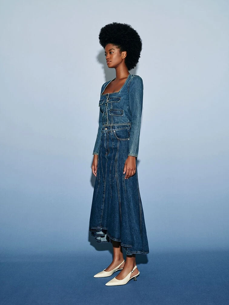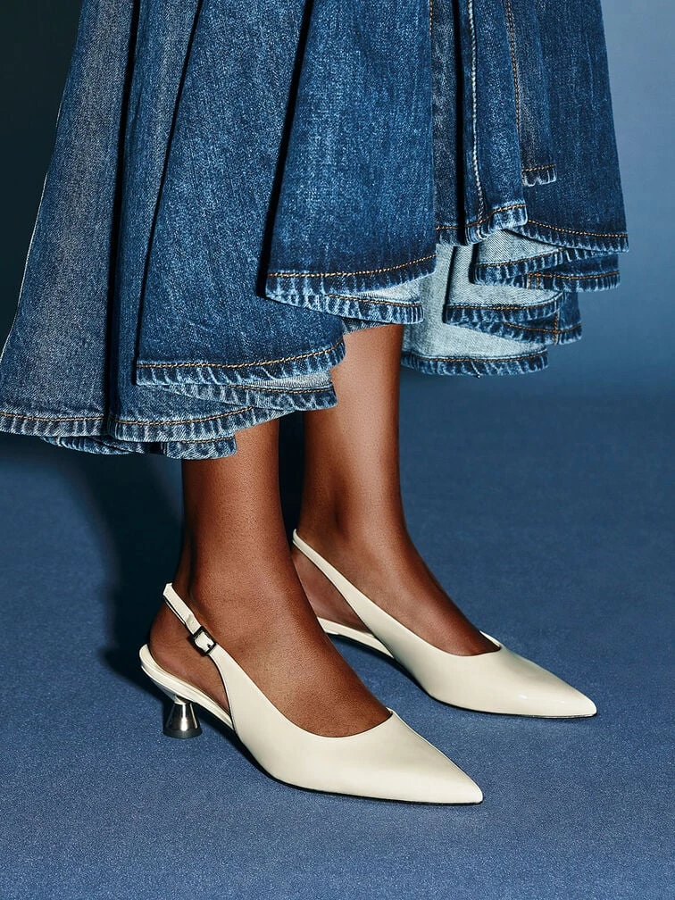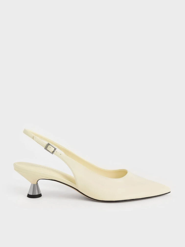 These spool heel slingback pumps are classic with a twist. They feature a muted butter-yellow patent finish that will add a touch of understated elegance to your summer ensembles. The sculptural heels don’t just add visual interest — they give you a boost in height without sacrificing comfort. The slingback straps can also be adjusted to ensure a tighter and better fit. Style yours with a pair of dark pants to create an eye-catching colour contrast.