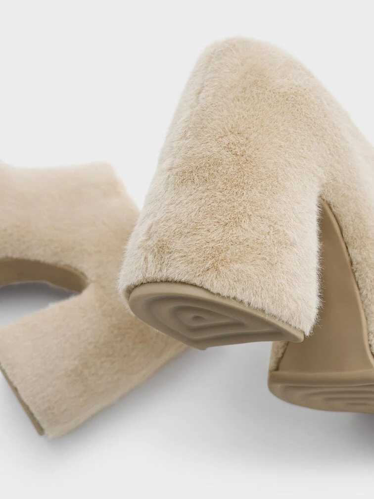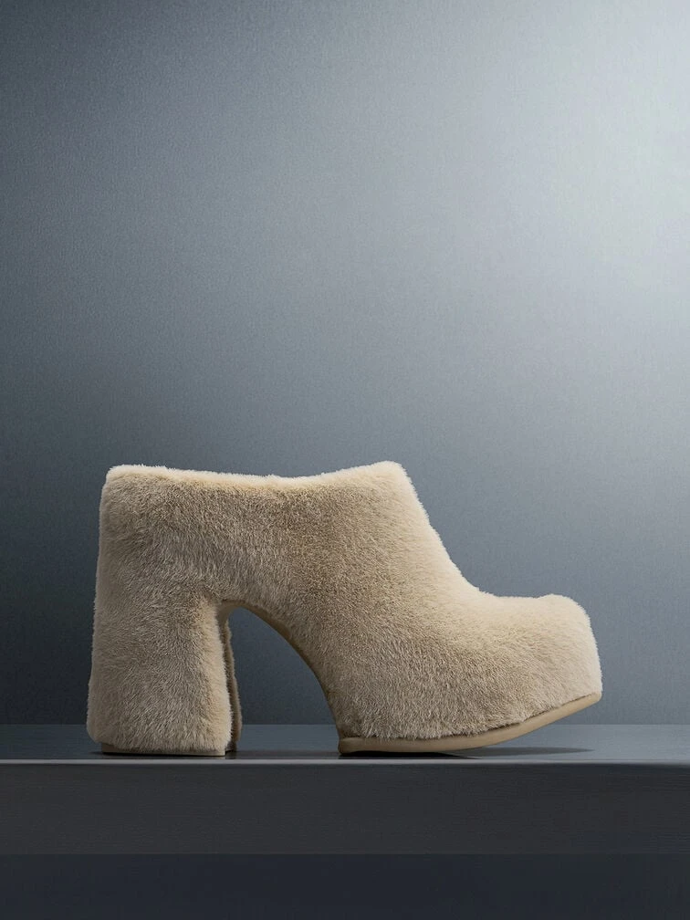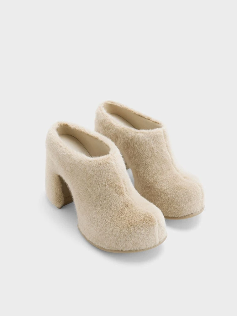 A pair of shoes that is certain to get everyone talking about. Cues these Pixie platform mules in a soft, furry iteration that will keep you on top of your style game from fall to winter. The avant-garde, sleek-like design coupled with the striking 10.5cm platform heels is enough to make you stand out from the crowd — both literally and sartorially — as soon as you slip them on. The versatile beige hue ensures these will slot right into your existing wardrobe.