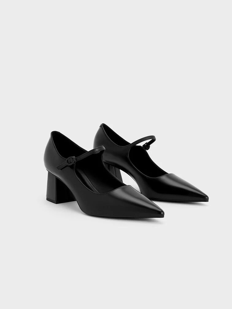 These Mary Jane pumps are stylish dress shoes that will complete all your workwear outfits. The classic Mary Jane silhouette has been sharpened for a polished and put-together aesthetic with a pointed-toed design in a glossy black finish for maximum sophistication. Dainty buckled straps across the vamps add a touch of femininity while offering a customisable fit. For a leg-lengthening effect, block heels offer a flattering and comfortable height boost – these versatile shoes will take you from work to your after-dark engagements.