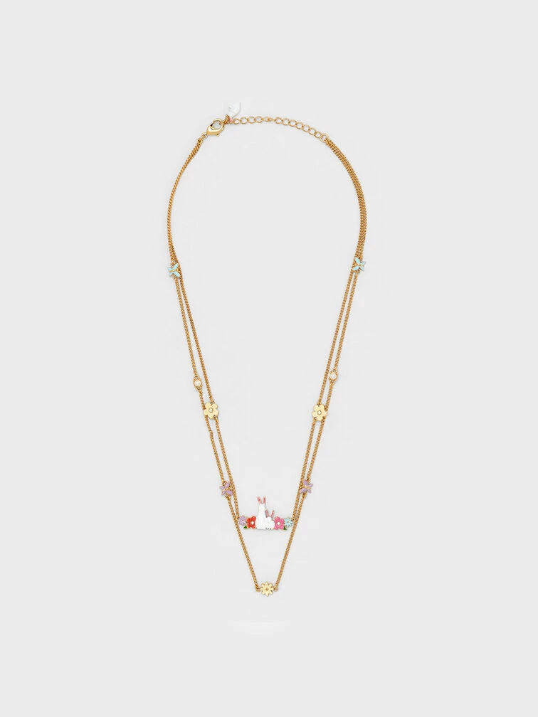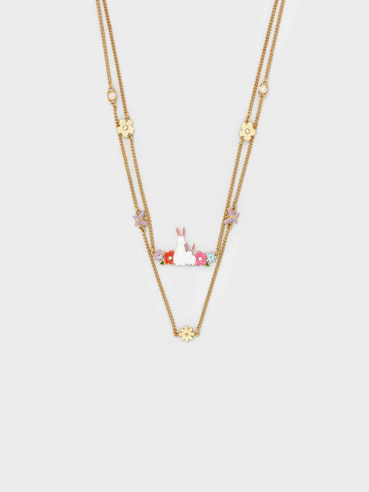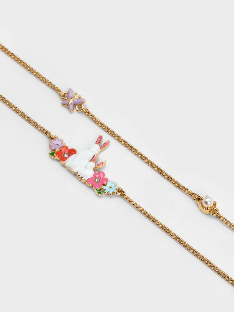 Add an adorable and charming touch to your look with our Rabbit necklace. Featuring whimsical flower and butterfly motifs, as well as pearl and crystal embellishments, this necklace is cute and dainty. Perfect for the lunar new year and beyond, you will find yourself gravitating towards this piece when you want to complete your look with a statement piece.