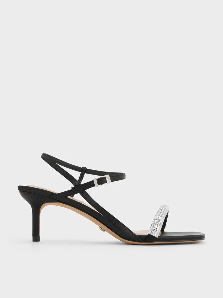 Glam up for the festive season with these eye-catching sandals. The strappy design is minimal to let the gem-embellished front straps shine – they will turn heads wherever you go. With the timelessly elegant black textured finish and stiletto heels, these sandals will elongate your frame for a flattering look. Pair them with your go-to little black dress for a classic party look, or embrace the bling by accessorising to the nines.
