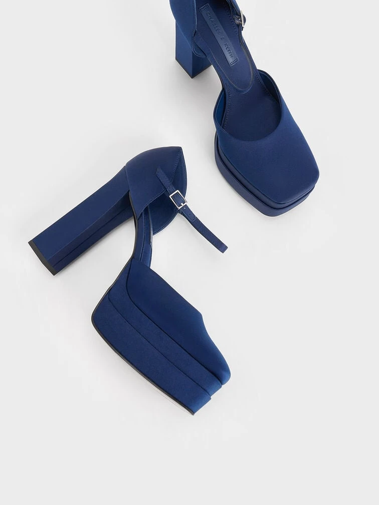 Stay ahead of the fashion curve this season with these platform d’Orsay pumps. Swathed in satin, they are equal parts comfy and luxurious. Minimalist and cut in a timeless style, these design elements cement their position as a wardrobe staple. Complete with a trendy tapered square-toe, there is simply no shortage of features to admire. Style them with a navy pantsuit for a standout monochrome moment.
