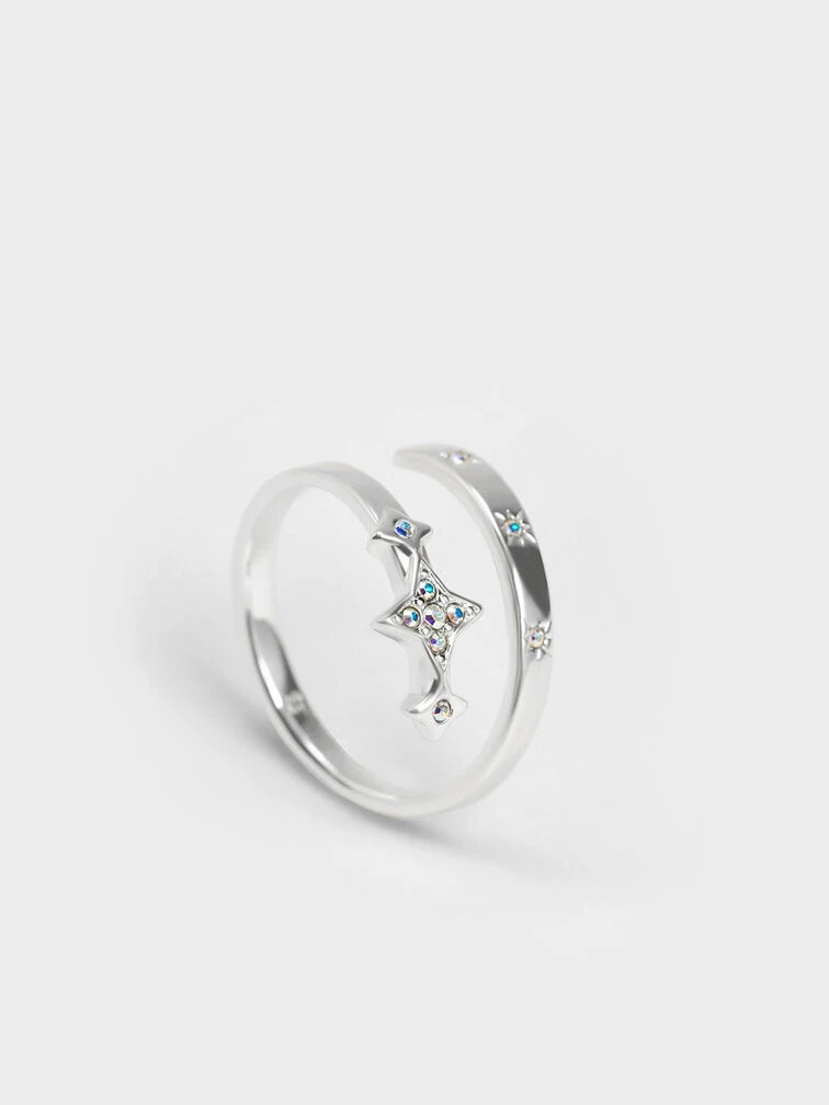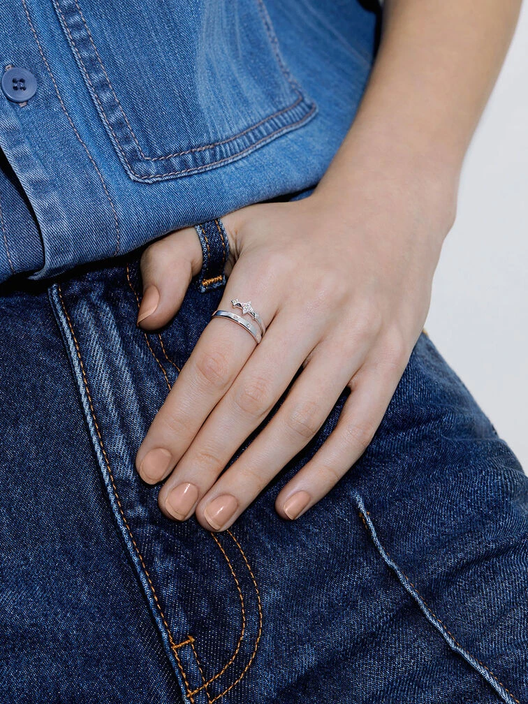 Accessorising is easy with this dainty ring in your collection. The crystal embellishments will sparkle whenever they catch the light, while the star motifs add a sense of whimsy to your overall look. Plus, we love the uniquely layered design that adds dimension and visual interest to your overall look. In a silver-toned finish, they will complement even the simplest of outfits. Wear it solo or stacked with other rings.