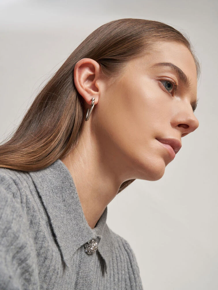 The gorgeous accessory your dinner-and-drinks look has been missing out on. The Swarovski® crystal embellishment and gentle heart design in these hoop earrings are effortlessly elegant. The silver colour is best suited for a modern look, plus it’s universally flattering on all skin tones. Wear them with your hair pulled back with a white asymmetric playsuit, stiletto heel pumps, and a circular clutch.