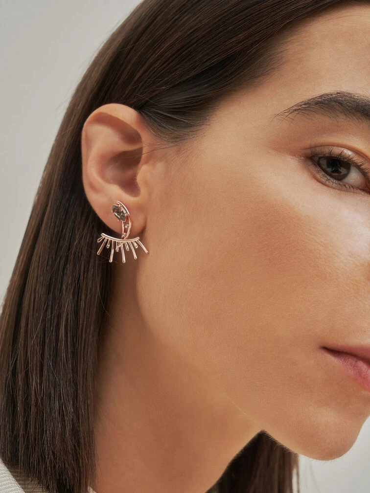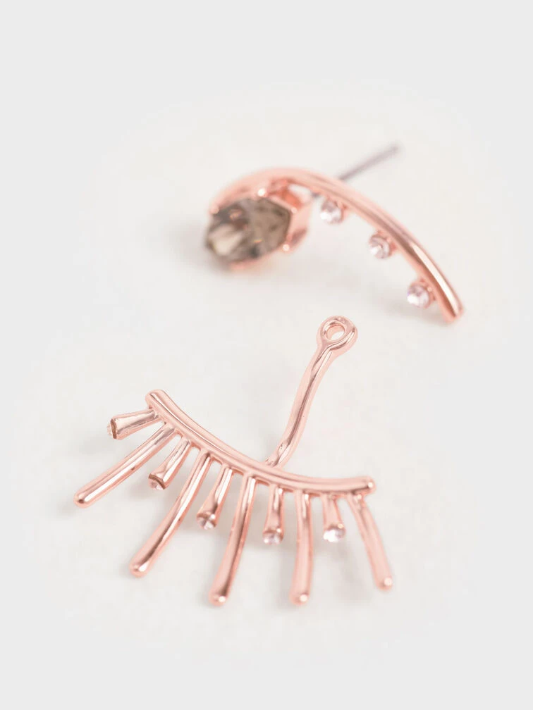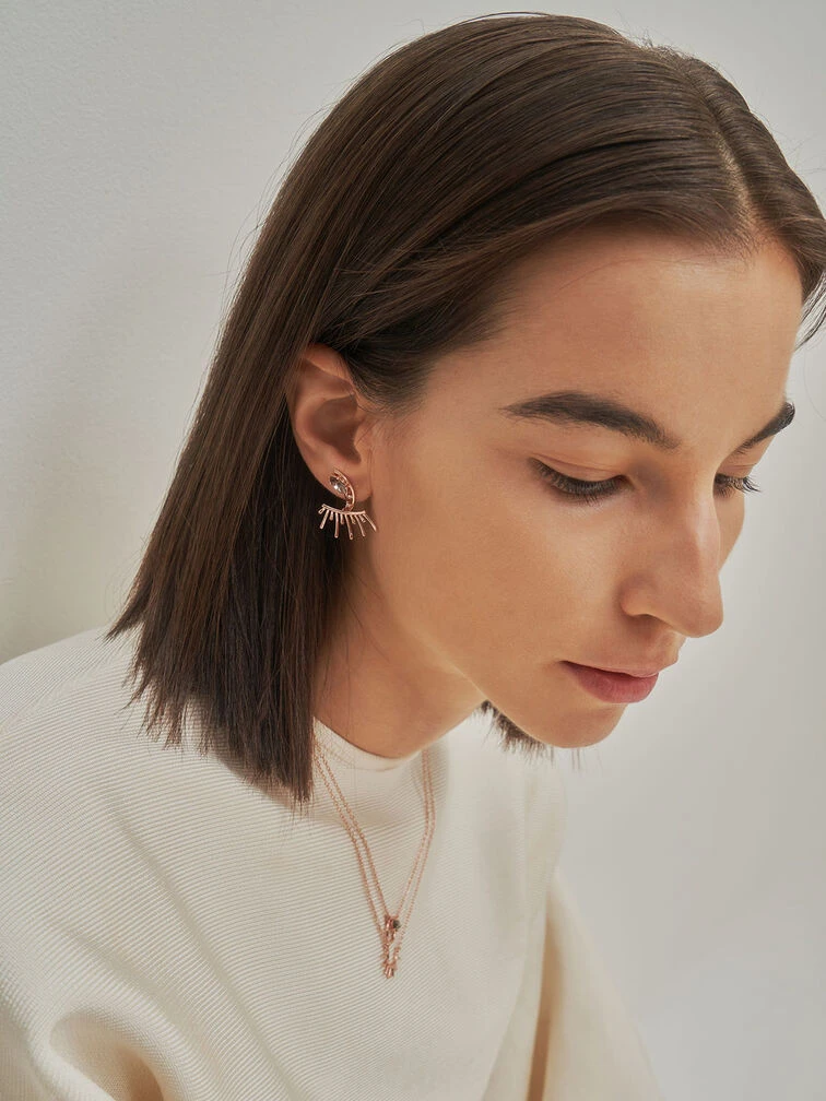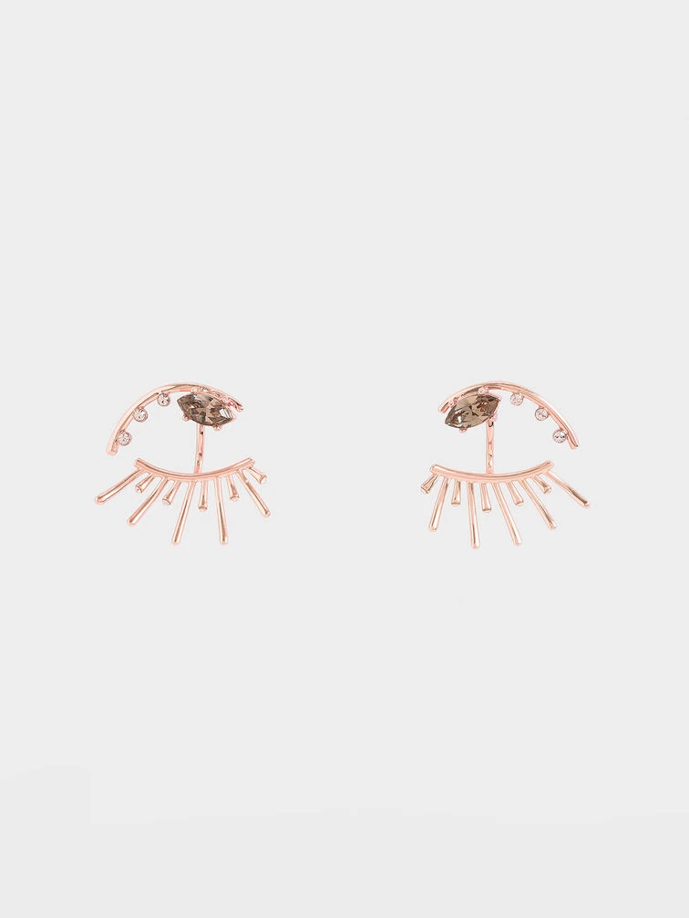 Whimsical with just a dash of edgy appeal, these eye-motif stud earrings in an elegant rose-gold finish are the perfect accessory to finish off a glamorous look. Featuring Swarovski® crystals for extra bling, the abstract design of these earrings are an effortless way to spruce up your evening wardrobe. Style with a maxi dress, embellished clutch and stiletto heels for a breathtaking look.