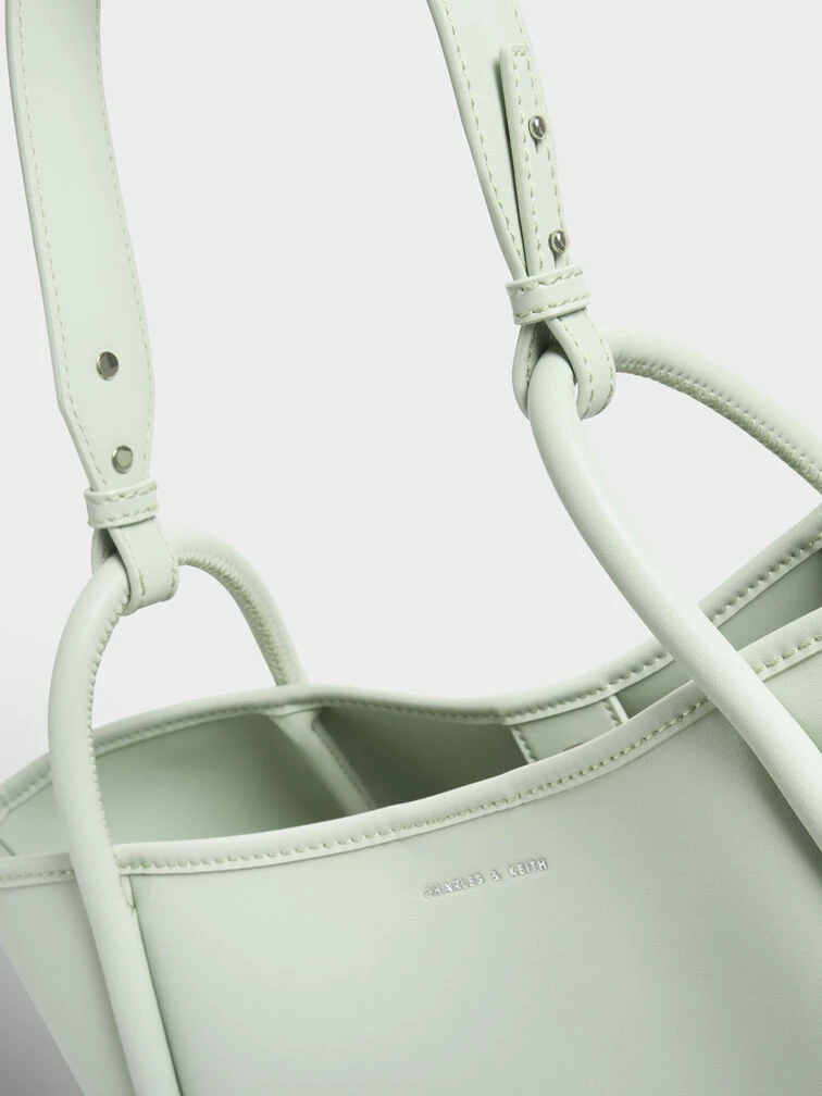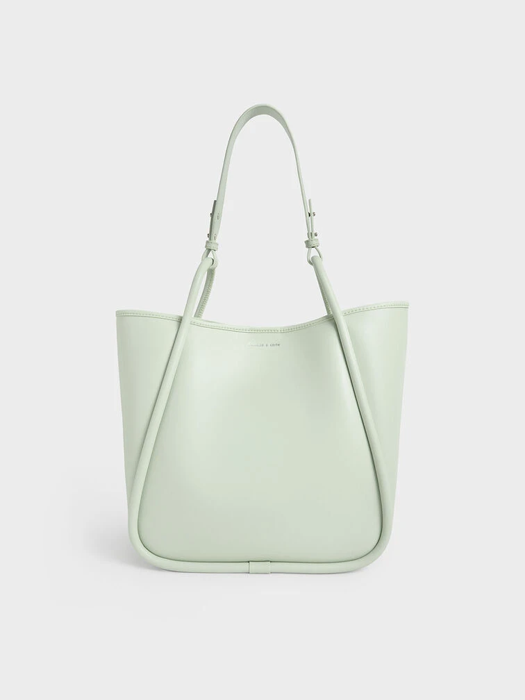 In refreshing mint green, this tote bag will be a welcome addition to any wardrobe. It features a slouchy silhouette — which transtates into a roomy interior — that lets you carry many things around effortlessly. It also features a detachable pouch that will keep all your small belongings in one place and the bag’s interior organised. Style this pastel piece with a beautiful floral dress to create an elegant and feminine look.