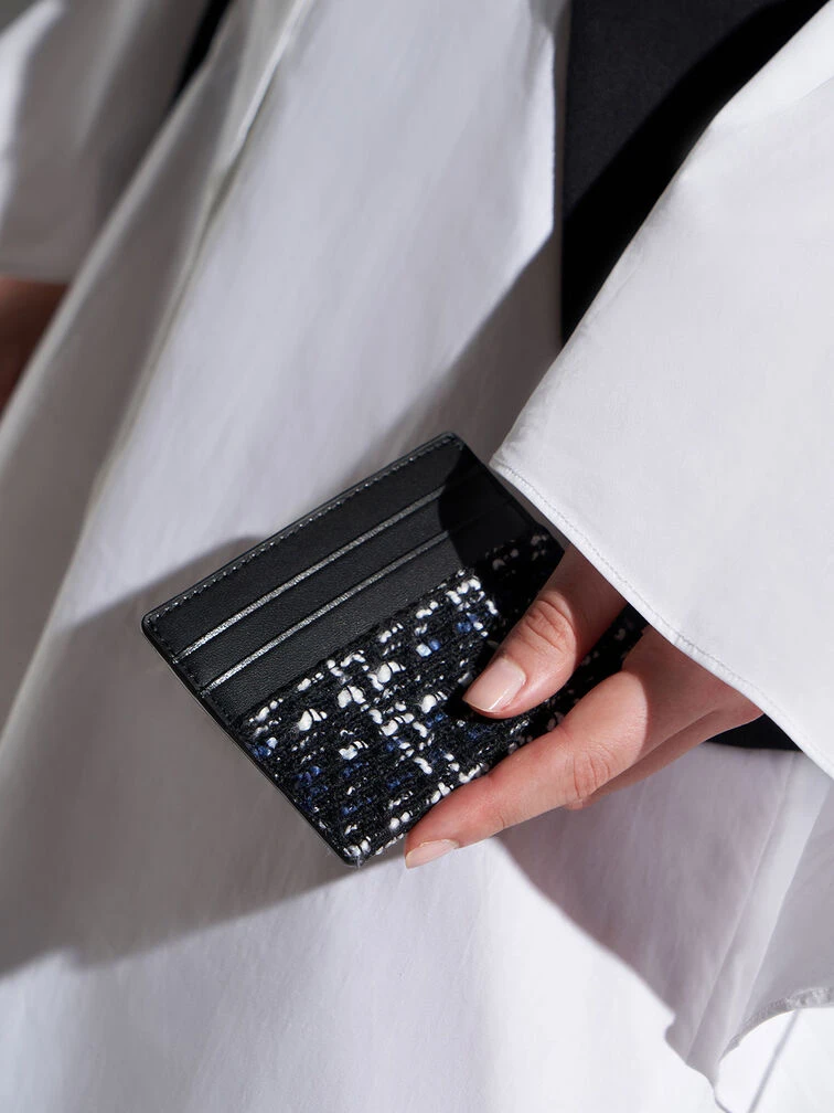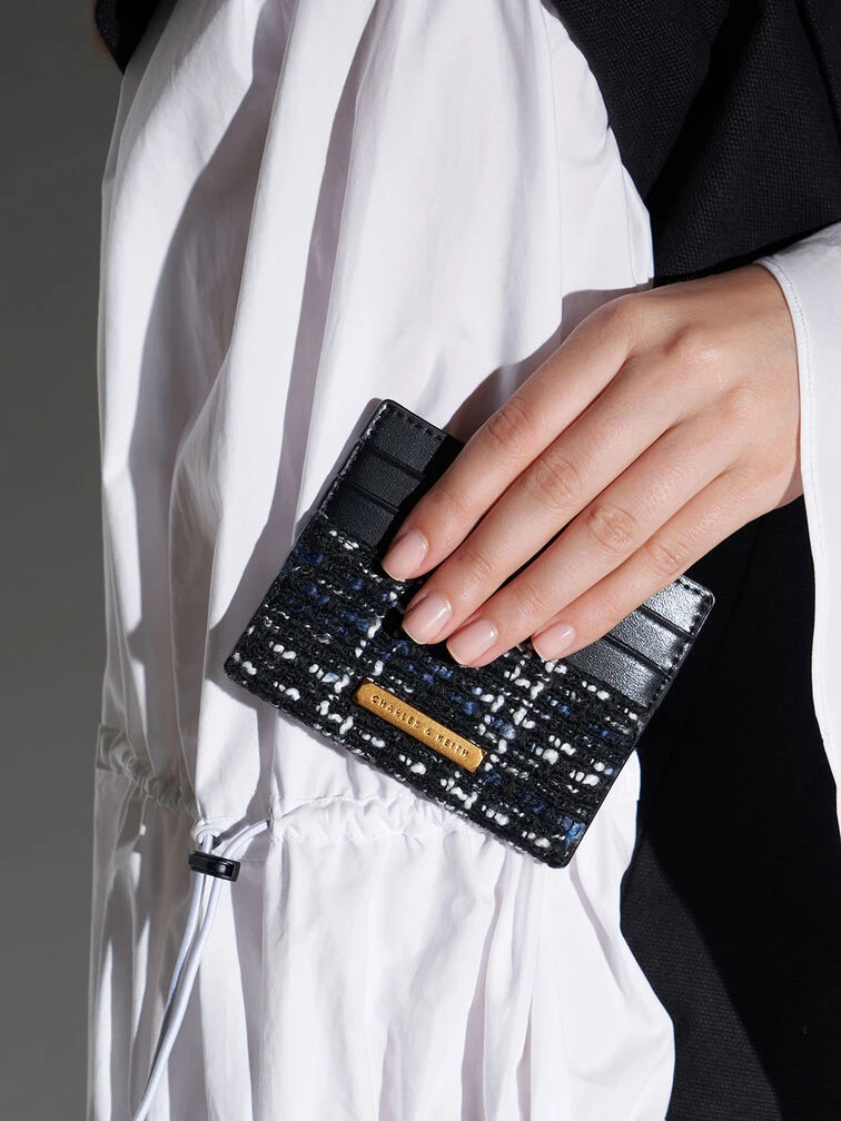 Luxurious tactile tweed takes centre stage in our latest collection of card holders. Offering multiple slots for maximum organisation, this pretty little number is finished in a brilliant black, blue and white colour combo that ensures it stands out wherever you take it. You will have no issues looking for this card holder in your daily bag, or just slip it into your back pocket and wow the crowd when you whip it out.