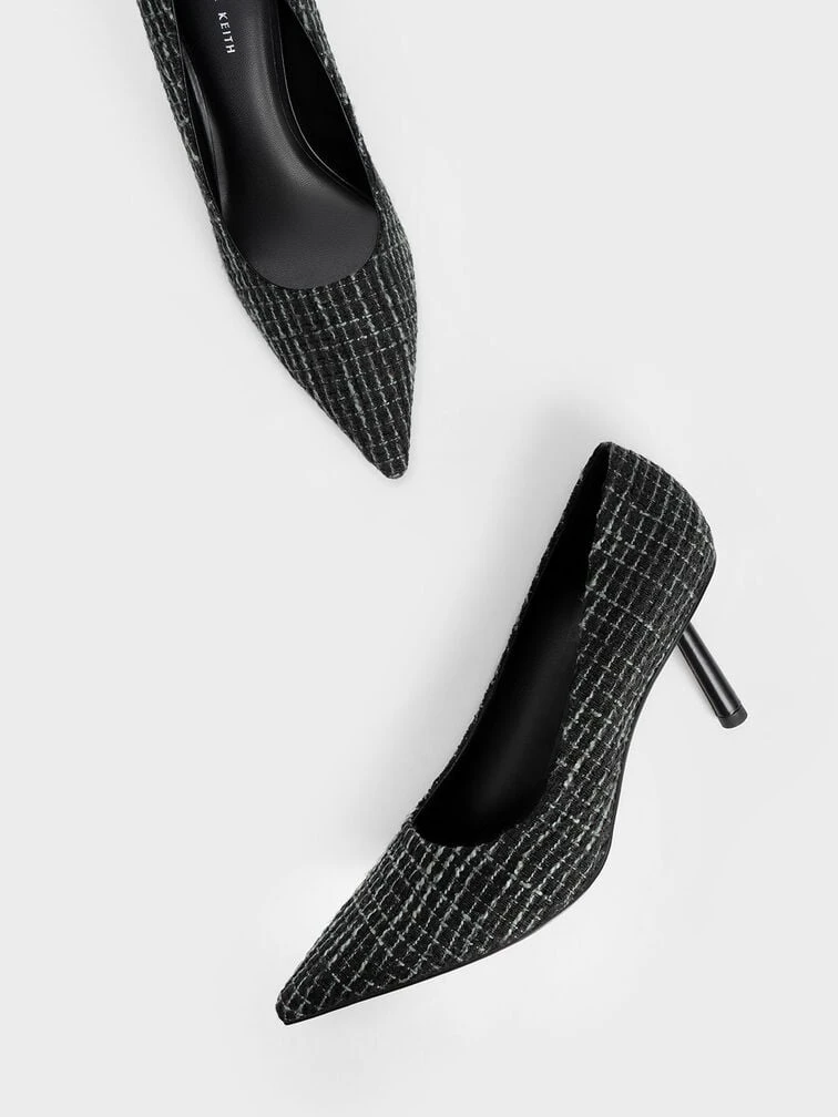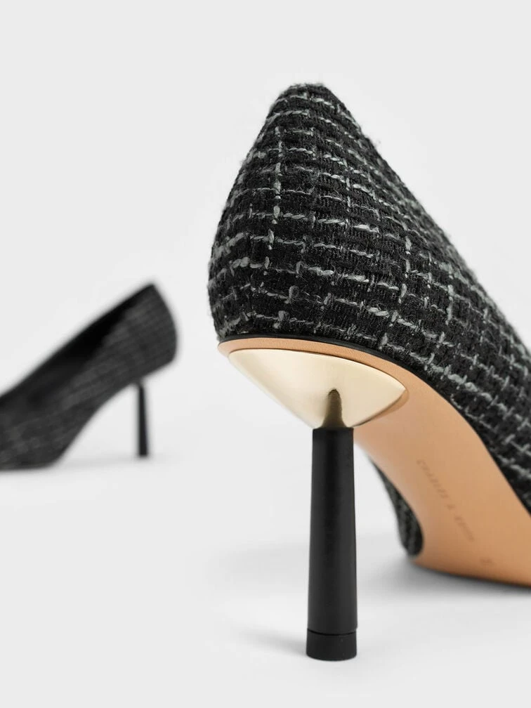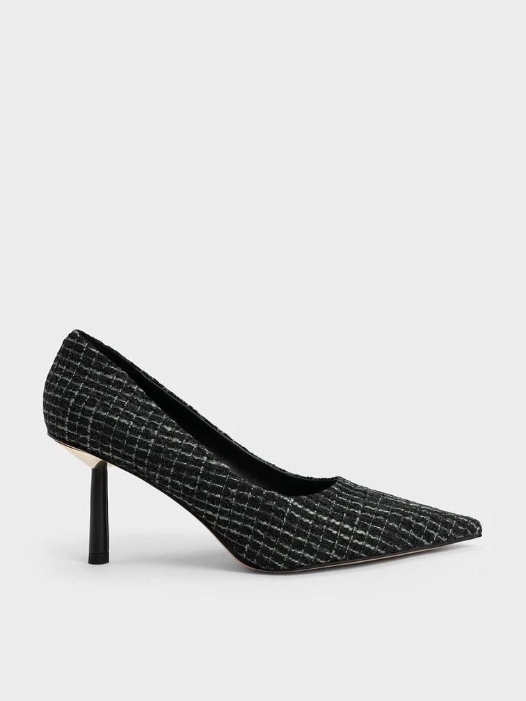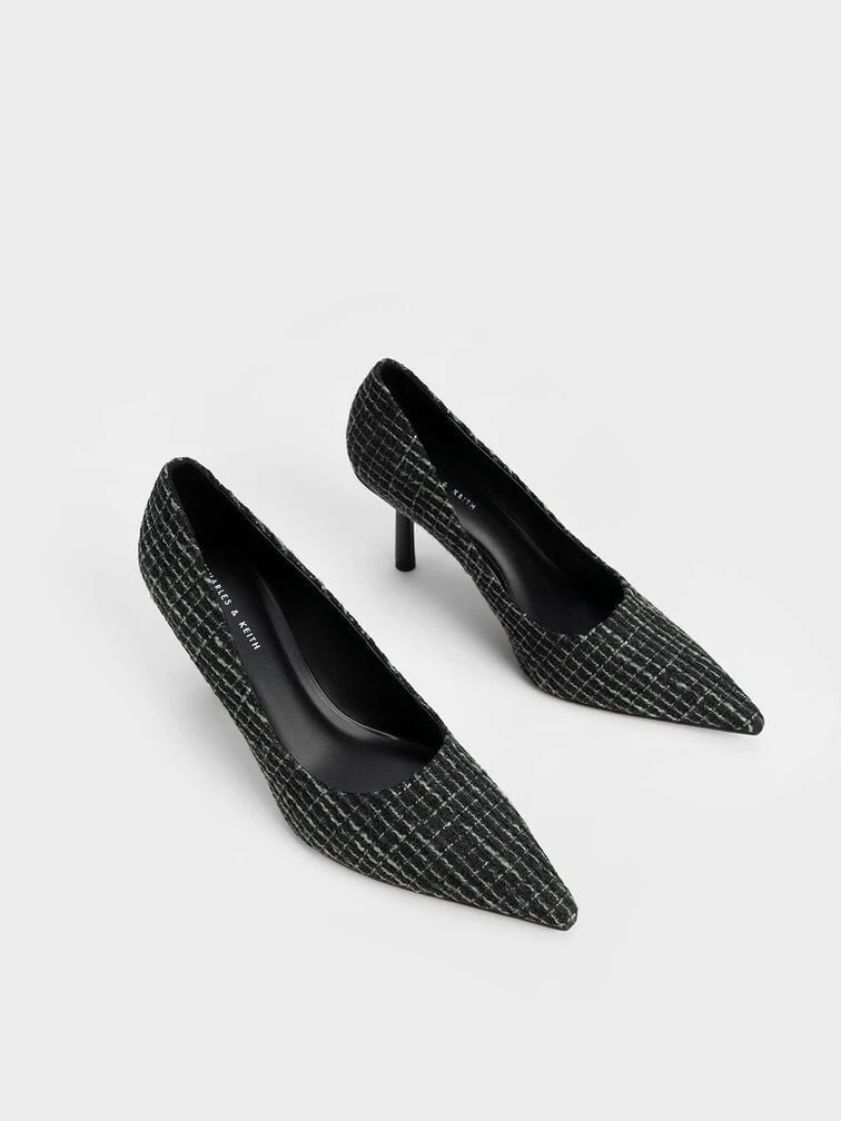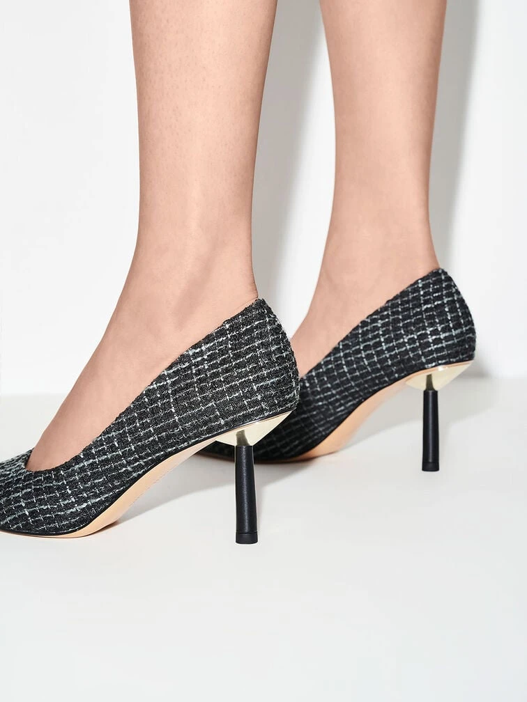 For a tweed twist on a classic silhouette, look no further than these cylindrical heel pumps. From the sleek cylindrical heel to the tactile tweed finish, there is no shortage of visually interesting elements to admire when it comes to these heels. Offering an outstanding 7.5cm elevation, enjoy a style and height boost the moment you slip these shoes on. For top marks, team them with a blazer, tailored shorts, and a matching tweed crossbody bag.