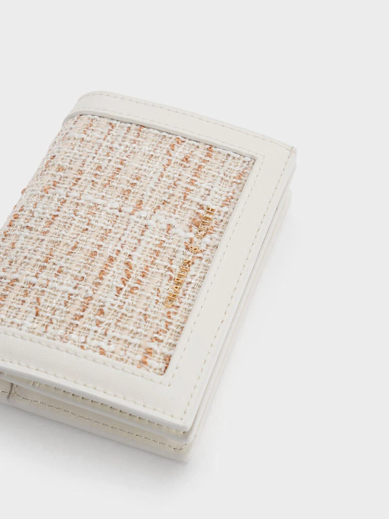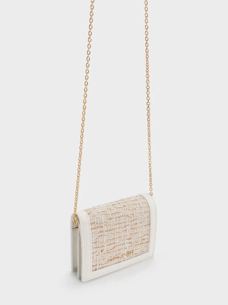 There is something about a tweed accessory that is simply hard to resist. Incredibly chic and adorable, this mini wallet is the perfect accessory to dress up your daytime looks. The tweed finish fully stands out, thanks to the understated white body. Keep your most-used essentials organised with the multiple card slots and zipped compartment while the snap-button closure keeps them safe and secure.