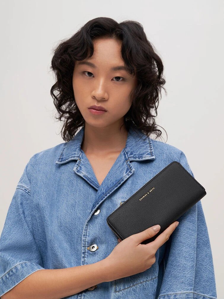 Keep the interior of your handbag neat and organised with a classic long wallet. Opening up to reveal several compartments and card slots, it will hold all your small items and valuables neatly in one place. The zip-around design offers great security that will make sure they are always safely stowed. On days when you are travelling light, carry this practical piece by itself for a chic minimalist look.